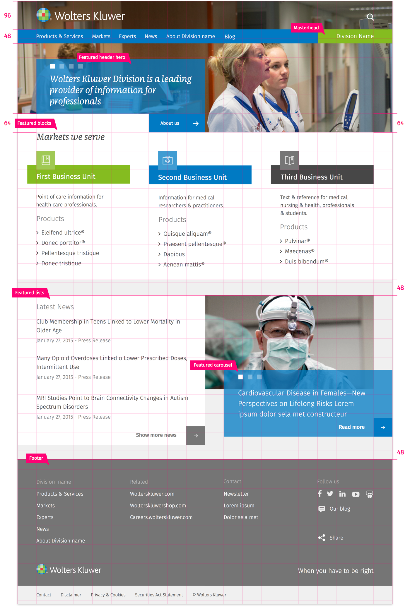 設計之初,確定設計的最小單位4,依照設計的最小單位,在排版時,橫向和縱向的間距都是4的倍數(shù),包括模塊與模塊間、文本和文本間、文本與圖片間等等的間距通常都是最小單位的倍數(shù);logo所占高度,導航高度,banner位置和高度,在設計調整后要做到所有設計界面的一致性。確定home的規(guī)范后,隨后的頁面設計就有了條條框框,延續(xù)風格,嚴謹規(guī)范。