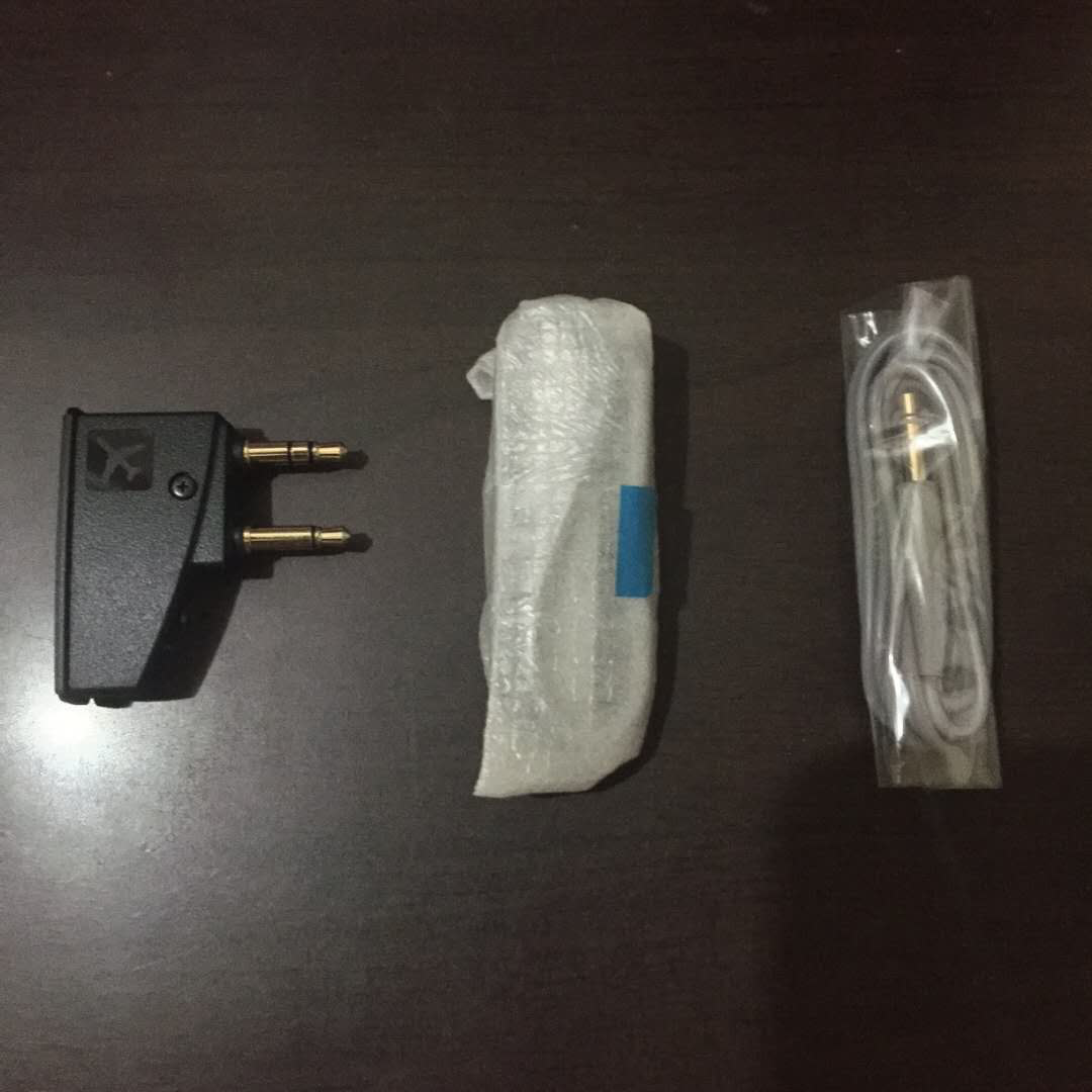 這是配件,航空轉(zhuǎn)接頭,數(shù)據(jù)線(耳機內(nèi)置鋰電池,官方稱使用時長是20個小時,實際體驗也差不多)、耳機線