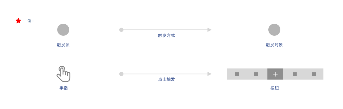 觸發(fā)行為包含三個要素,包括觸發(fā)源、觸發(fā)對象、觸發(fā)方式,在動效規(guī)范文檔中要明確闡述三者的聯(lián)動關(guān)系。
