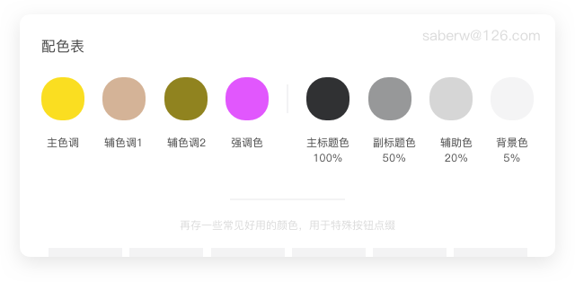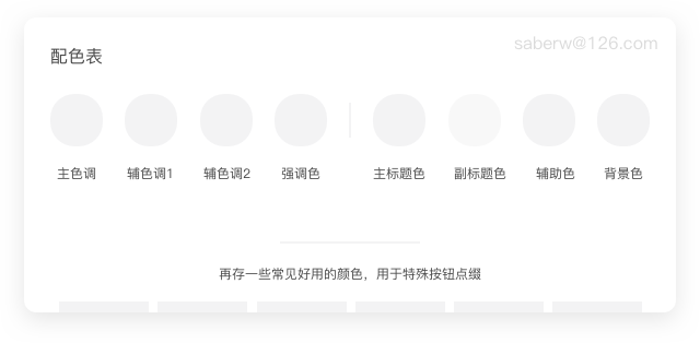 不過(作為嚴(yán)謹(jǐn)?shù)脑O(shè)計(jì)師)我還會帶一條平時(shí)收集的好用的顏色,用于特殊按鈕或者小圖標(biāo)點(diǎn)綴。當(dāng)某一些頁面有更多顏色需求時(shí),就可以直接吸取,稍微調(diào)整一下就能用。