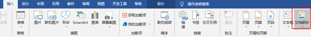 3.單擊“文檔部件”在出現(xiàn)的下拉列表中,選擇“域”