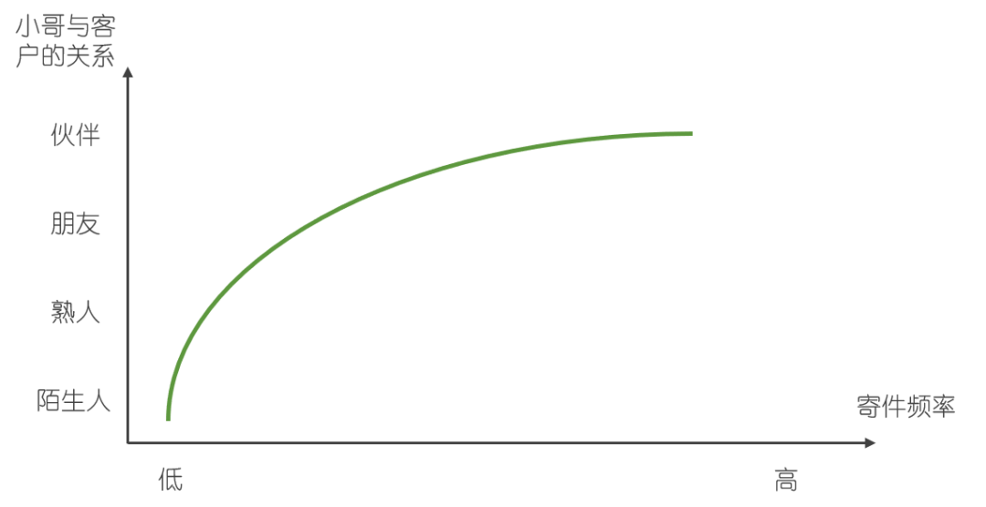 這一點(diǎn)在我入職順豐后也深有感受。雙十一我們到一線網(wǎng)點(diǎn)支援小哥派送貨物,有的小哥直接輸入了客戶家的門鈴密碼,把貨品送到客戶家的鞋柜上。還有很多服務(wù)CBD區(qū)域的小哥,他們和寫字樓里的前臺(tái)MM打成一片,甚至喜結(jié)連理。這些關(guān)系已經(jīng)超越“熟人”,成為了“朋友”、甚至是“伙伴”(見(jiàn)下圖)。