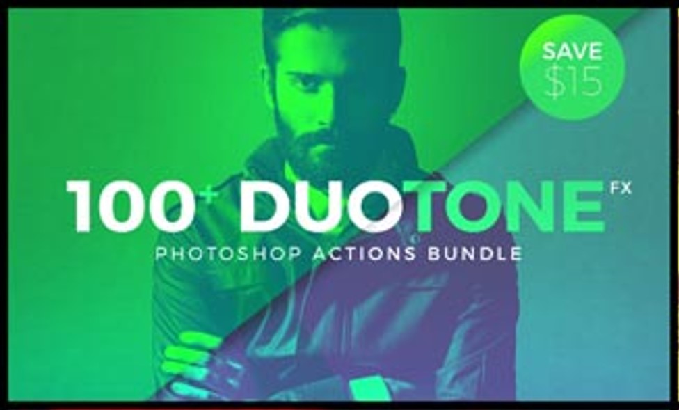 用斜線將圖片分割,分別用兩種不同程度的綠色的雙色化處理,表達一種時尚、酷炫的效果。