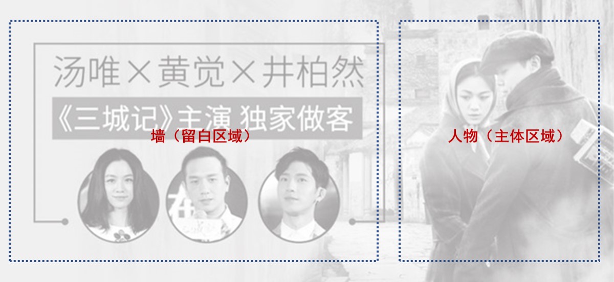 這張背景圖片右側(cè)是人物,是圖片的主體區(qū)域,也是采訪中的演員所飾主要人物,圖片的左側(cè)是一堵空白的墻。