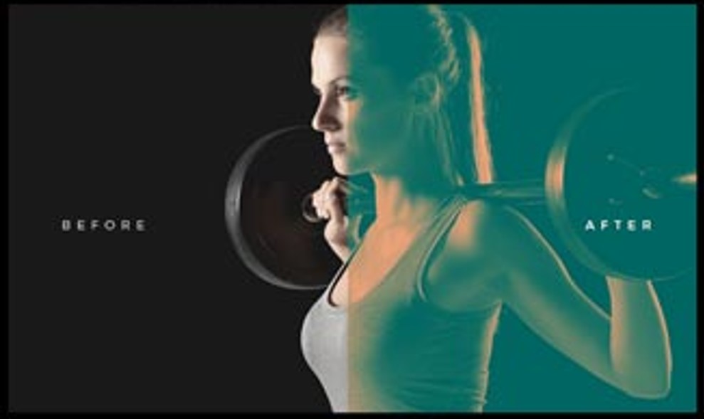 將圖片的一半進行雙色化處理,在增加圖片設計感的同時,可以為文案留有足夠的空間。