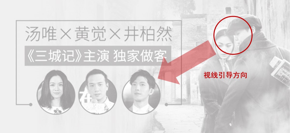 同時在背景圖片中,兩位主人公的視線從右至左,引導讀者的視線轉(zhuǎn)移到主要信息上去。