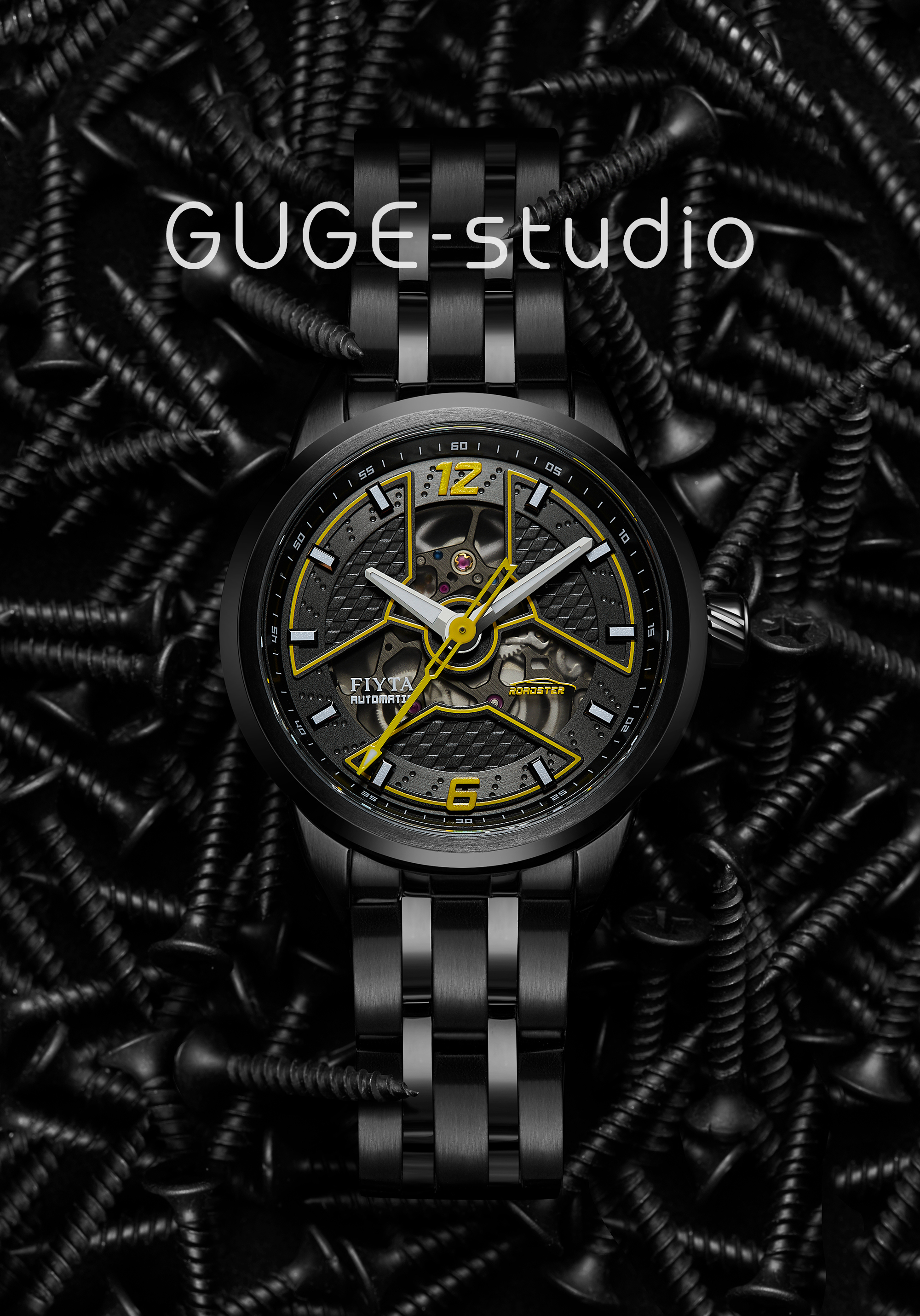 機(jī)械手表與金屬堆砌,通過(guò)復(fù)雜的背景,重復(fù)的形狀,凸顯手表的線條和細(xì)節(jié)