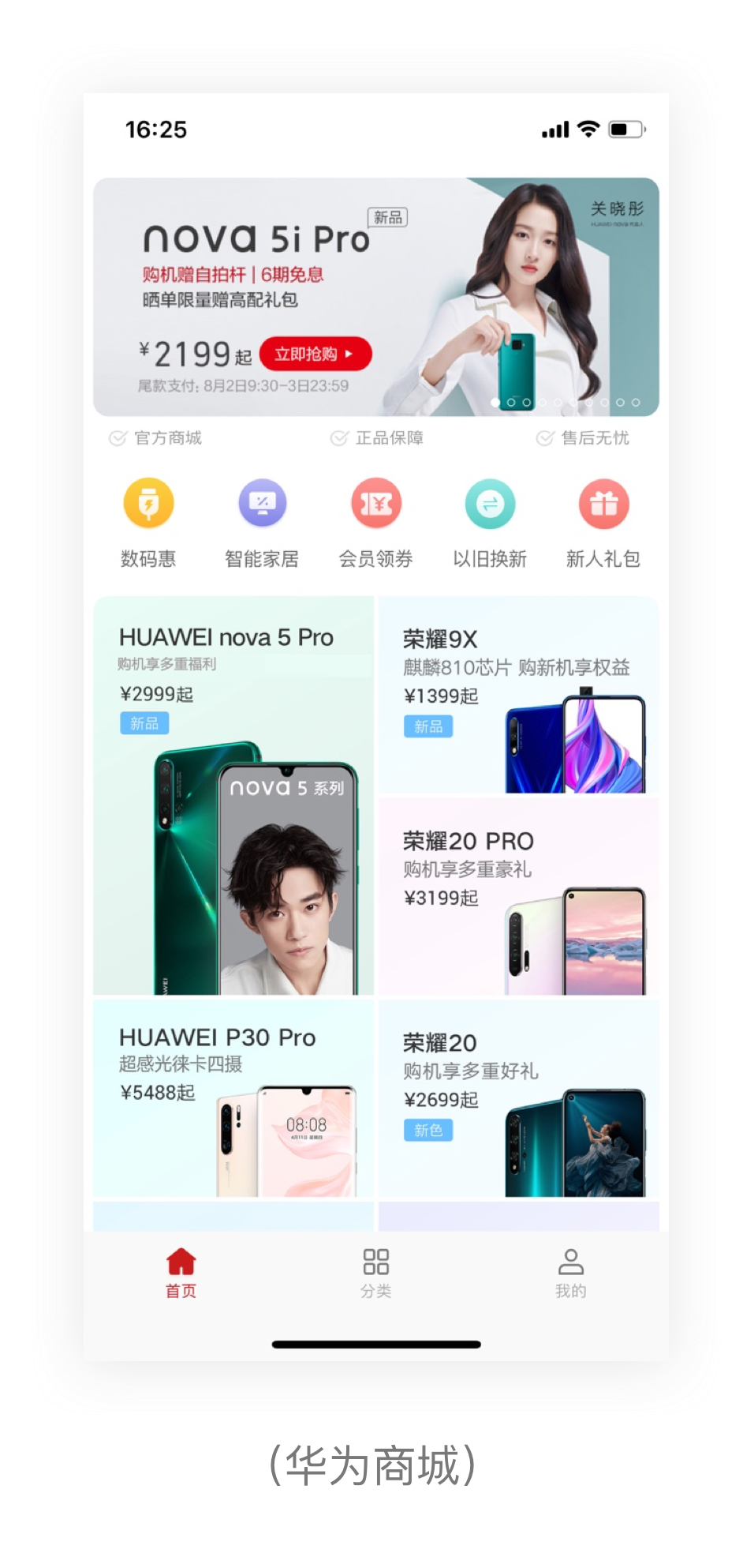 背景圖:往往不如投影和大小常用,但是它的使用可以將模塊從其他樣式中凸顯出來,多用于banner、推薦等等重要模塊中,比如華為商城的banner模塊,該模塊直接突出促銷產(chǎn)品。
