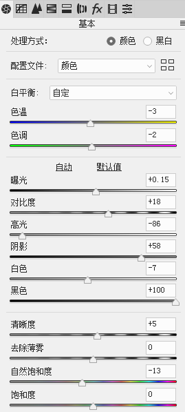 原圖色溫有點(diǎn)偏黃,所以將色溫往藍(lán)色—冷色調(diào)整,為整體調(diào)性偏青藍(lán)—冷色做鋪墊。
