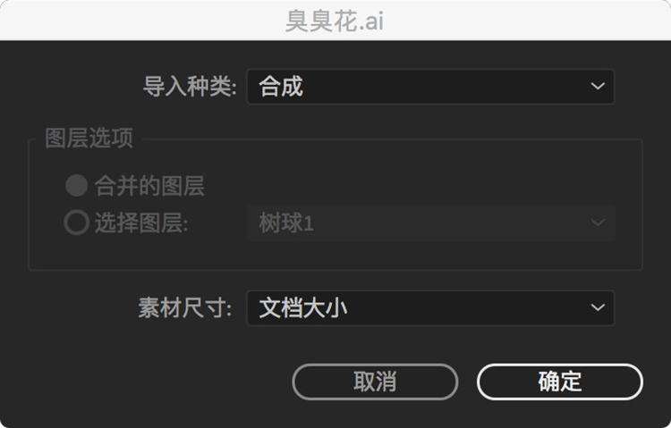 接下來將準(zhǔn)備好的這個AI文件導(dǎo)入AE中,彈窗選擇合成并確認(rèn),見下圖。