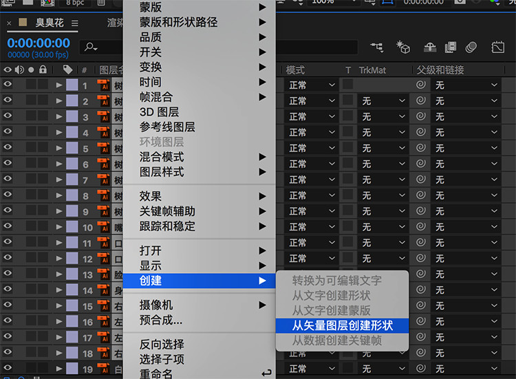 選中圖層(這里我全部選擇了),右鍵——創(chuàng)建——從矢量圖層創(chuàng)建形狀,結(jié)果如下圖。