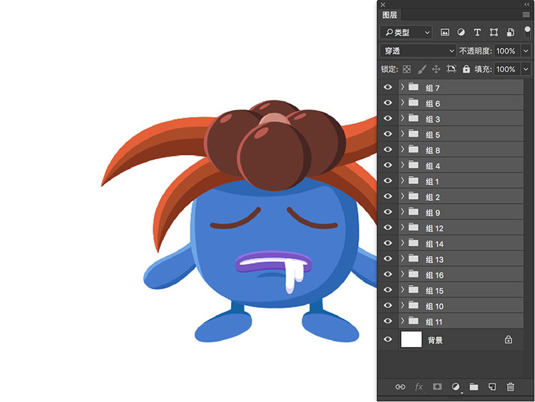 接下來需要吸取AI文件中各元素的顏色,吸取色值后粘貼入PS對應(yīng)的圖層中,若覺得圖層亂建議分組,結(jié)果如下。