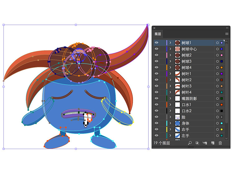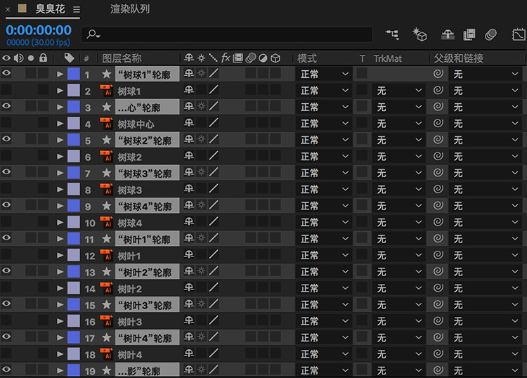 但如果你打算把這個AI插畫導(dǎo)入AE做動效,我是建議將需要變化和施加動效的部分新建圖層單獨分開并命名,見下圖。