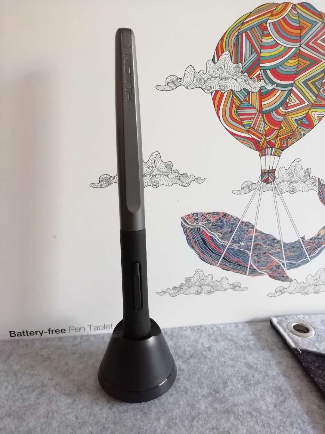 無源數(shù)位筆,無需安裝電池,擺脫了傳統(tǒng)充電的束縛。筆身較輕,黑色橡膠材質(zhì)的握筆處稍重,灰色筆身非常輕,握筆處側(cè)邊的雙按鍵可自定義設(shè)置。筆座較輕,立著放筆很容易倒,橫著放筆時最好以黑色橡膠為重點放在筆座上,可平衡筆身的力量。