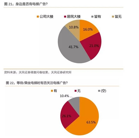 天風證券研究所研究團隊制作了一份調(diào)查問卷,研報認為,電梯廣告影響力較強,在電梯里投廣告最有效,并且電梯廣告媒體仍有較大提升空間。