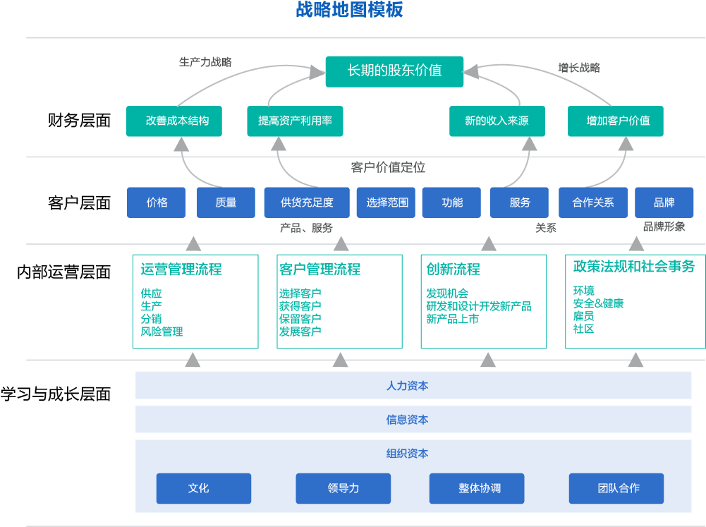 財務(wù)、客戶、內(nèi)部流程、學(xué)習(xí)與成長這四個方面包含了領(lǐng)先指標(biāo)和滯后指標(biāo)。財務(wù)指標(biāo)就是一個滯后指標(biāo),它只能反映公司上一年度發(fā)生的情況,不能告訴企業(yè)如何改善業(yè)績和可持續(xù)發(fā)展。而對于后三項領(lǐng)先指標(biāo)的關(guān)注,使企業(yè)達(dá)到了領(lǐng)先指標(biāo)和滯后指標(biāo)之間的平衡。