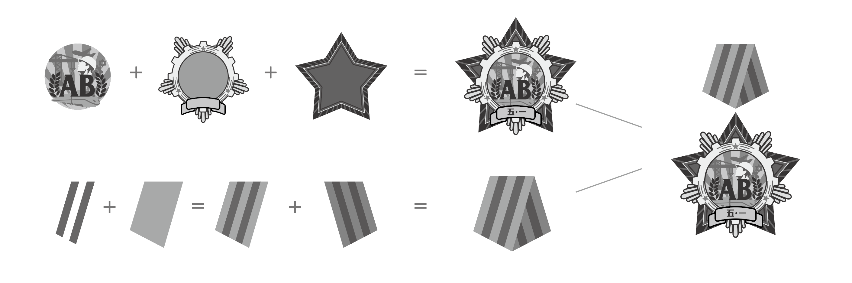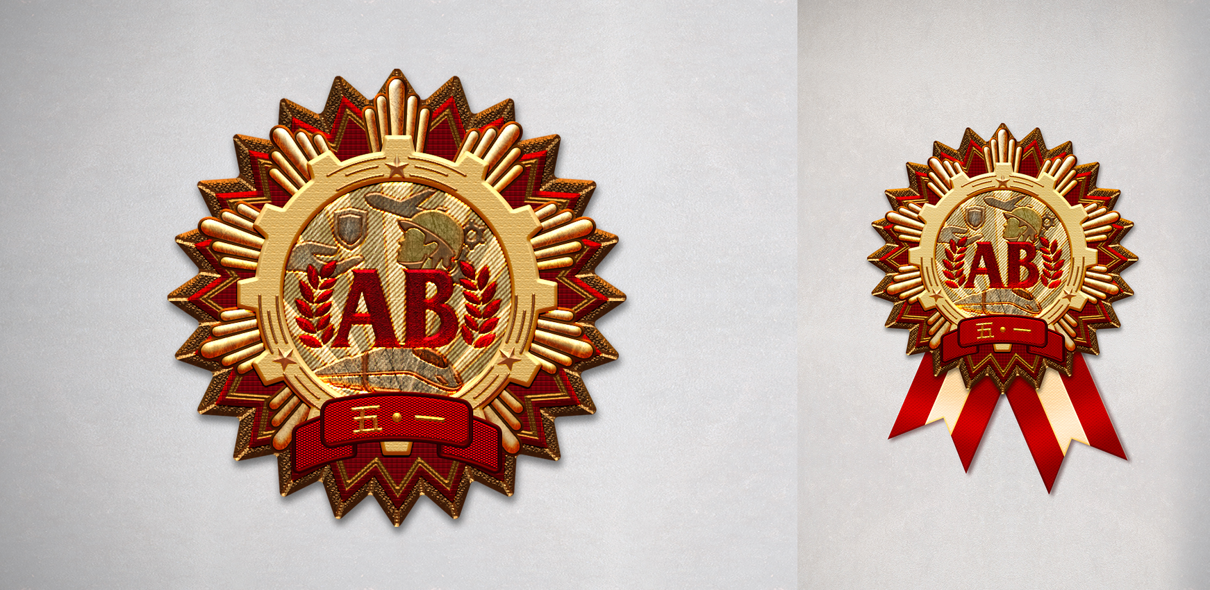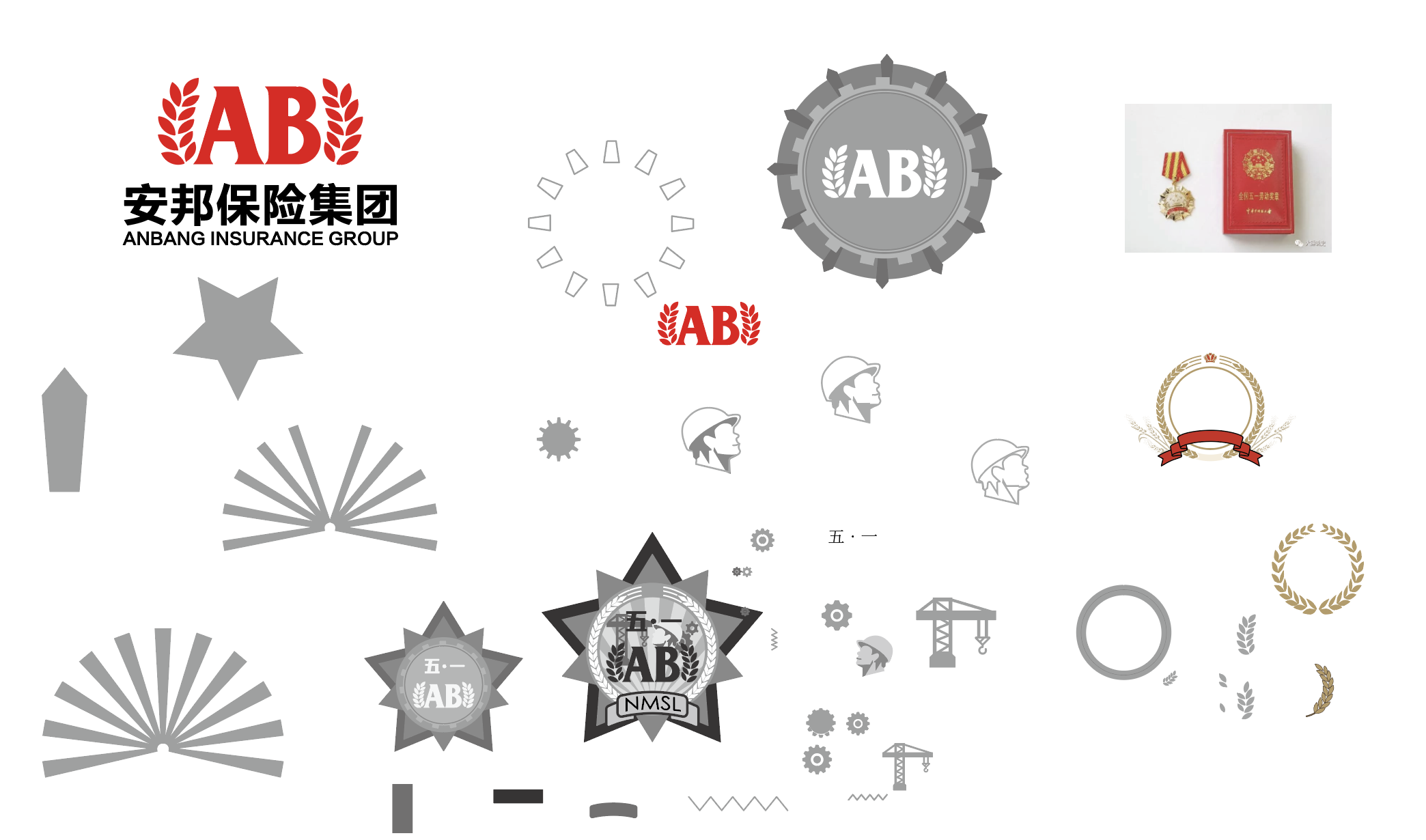 5、因為客戶粑粑覺得勛章比較敏感,要修改成一個獎?wù)碌臉幼?,并且里面適當(dāng)?shù)募尤氡kU相關(guān)的元素。經(jīng)過溝通我們確定加入手和盾牌的形狀,同時刪掉了塔吊元素。