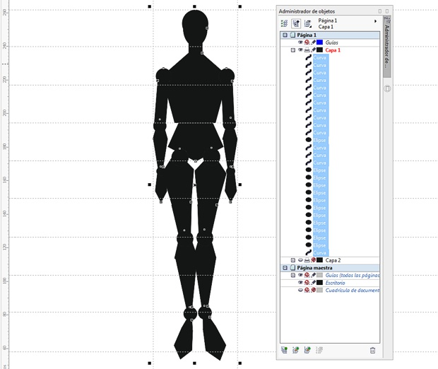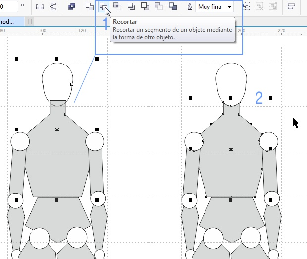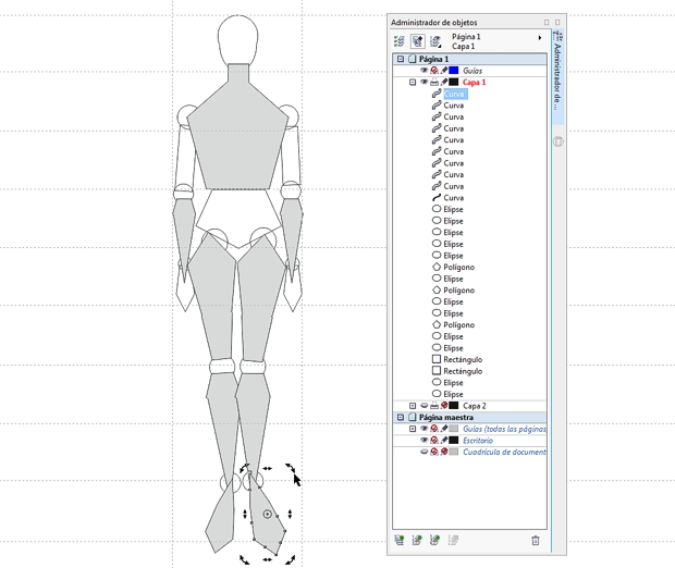 然后,我們將選擇構(gòu)成前臂的兩個(gè)多邊形,并相互焊接。為了顯示結(jié)果,我們建議您使用選擇工具選擇合并產(chǎn)生的對(duì)象,并添加一個(gè)填充顏色,單擊您想要的顏色表。我們將繼續(xù)焊接大腿的兩個(gè)多邊形,即小腿兩個(gè)多邊形和雙腳兩個(gè)多邊形,直到取得與下圖類(lèi)似的結(jié)果。