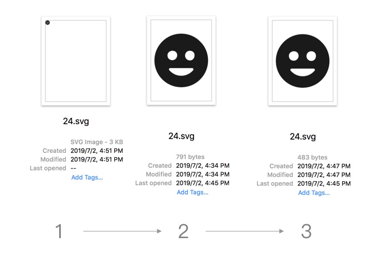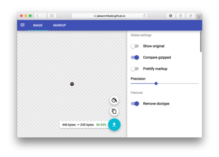 現(xiàn)在關(guān)鍵問(wèn)題已經(jīng)解決,就是有點(diǎn)兒強(qiáng)迫癥啊,發(fā)現(xiàn)了一個(gè)進(jìn)一步優(yōu)化SVG體積的好工具SVGOMG,墻裂安利一下
