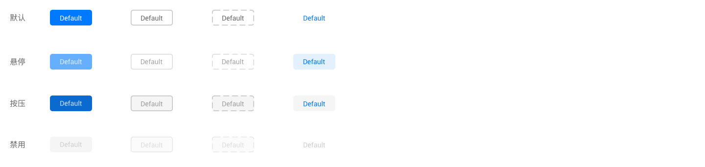 統(tǒng)一設置按鈕組件大小,以及按鈕的各種狀態(tài):默認狀態(tài)、鼠標懸停、按住/激活、禁用;