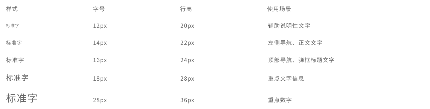 后臺系統(tǒng)中常用字體大小為12px、13px、14px、16px、18px、20px、24px、30px。