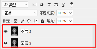 皮膚的處理,我們選擇高低頻方法進行磨皮:按住快捷鍵shift+alt+ctrl+e合并圖層:為圖層2,再次復制一個圖層2:為圖層3