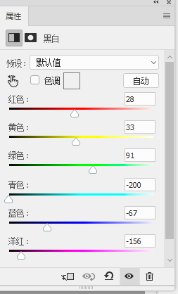 首先第一步我們需要做的就是將照片轉(zhuǎn)為黑白,這里我選擇調(diào)整圖層里的黑白工具,其實PS里面有很多轉(zhuǎn)黑白的方式,之所以選擇這個黑白工具因為這個工具可以調(diào)整照片原本顏色的黑白亮度。