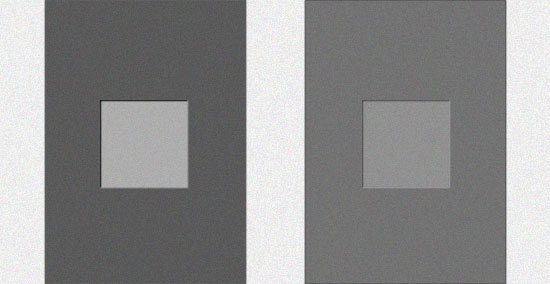 在下面這個例子中,我們可以看到和背景色相比較,左邊的比右邊的視重更重更突出,因為左邊的對比度更高。