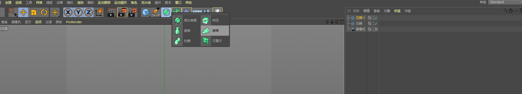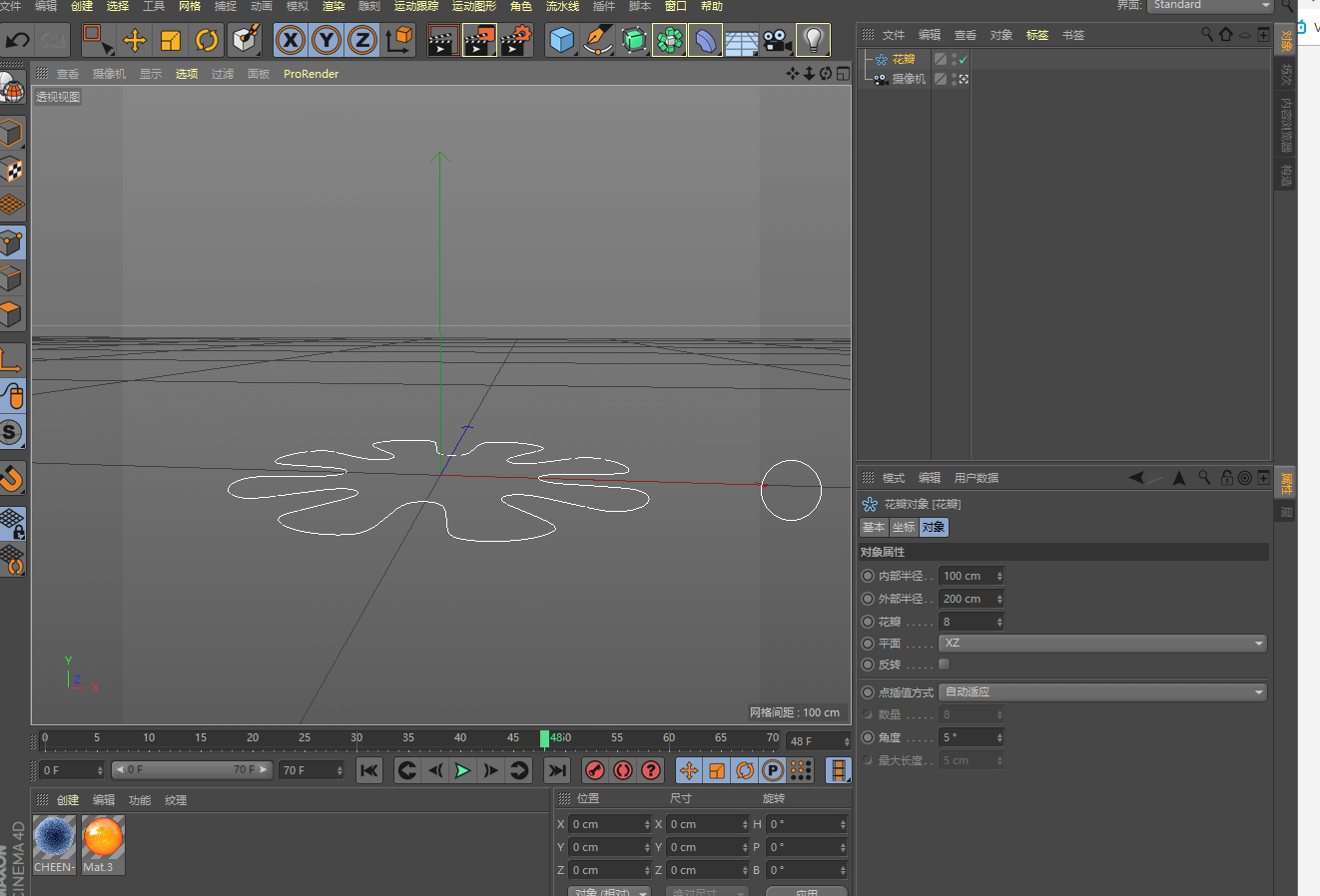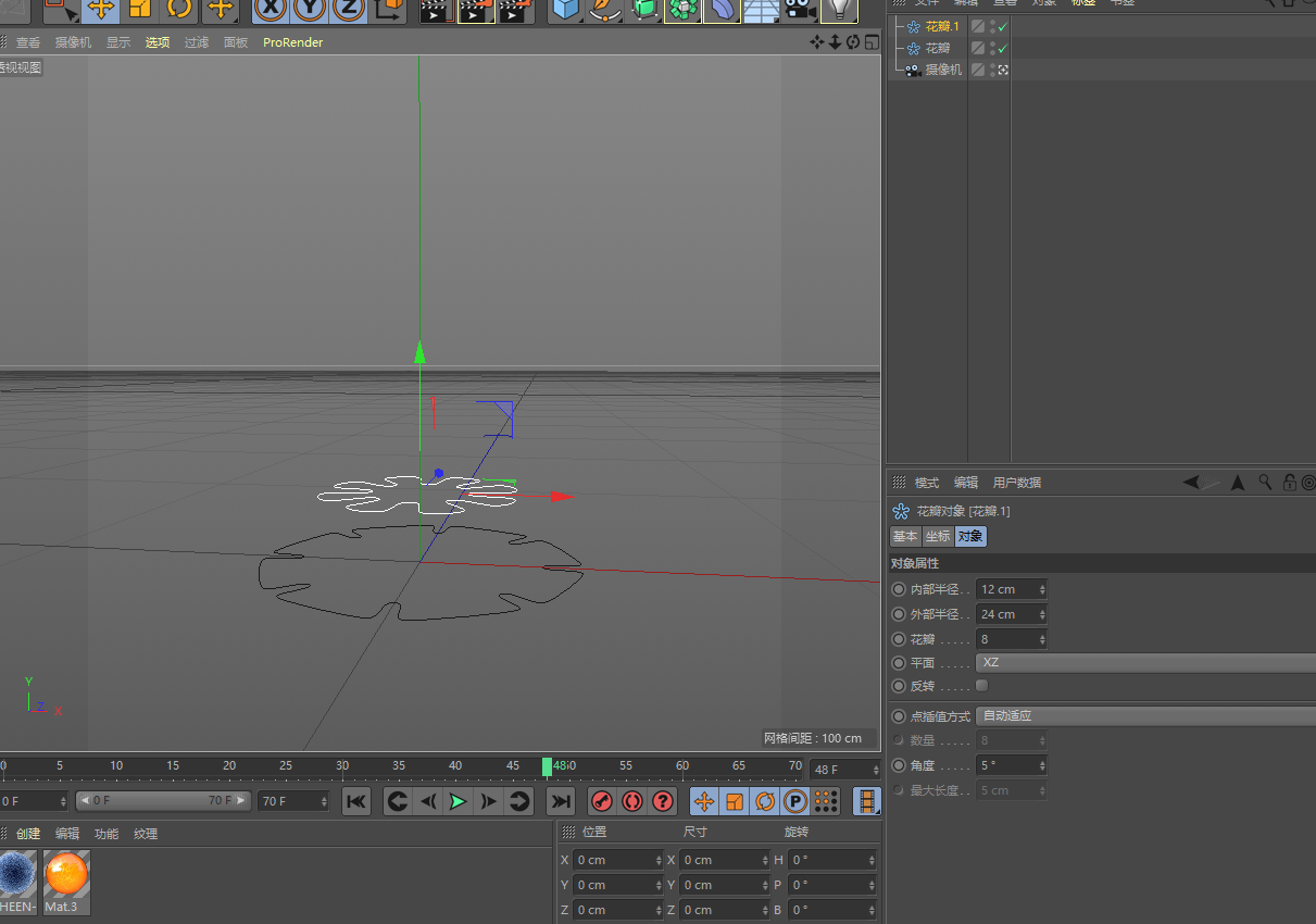 1.新建場景1080*1080,建立攝像機,切換到攝像機視角,新建一個花瓣,在屬性里,點擊對象-調整平面為XZ,這樣它就朝上了