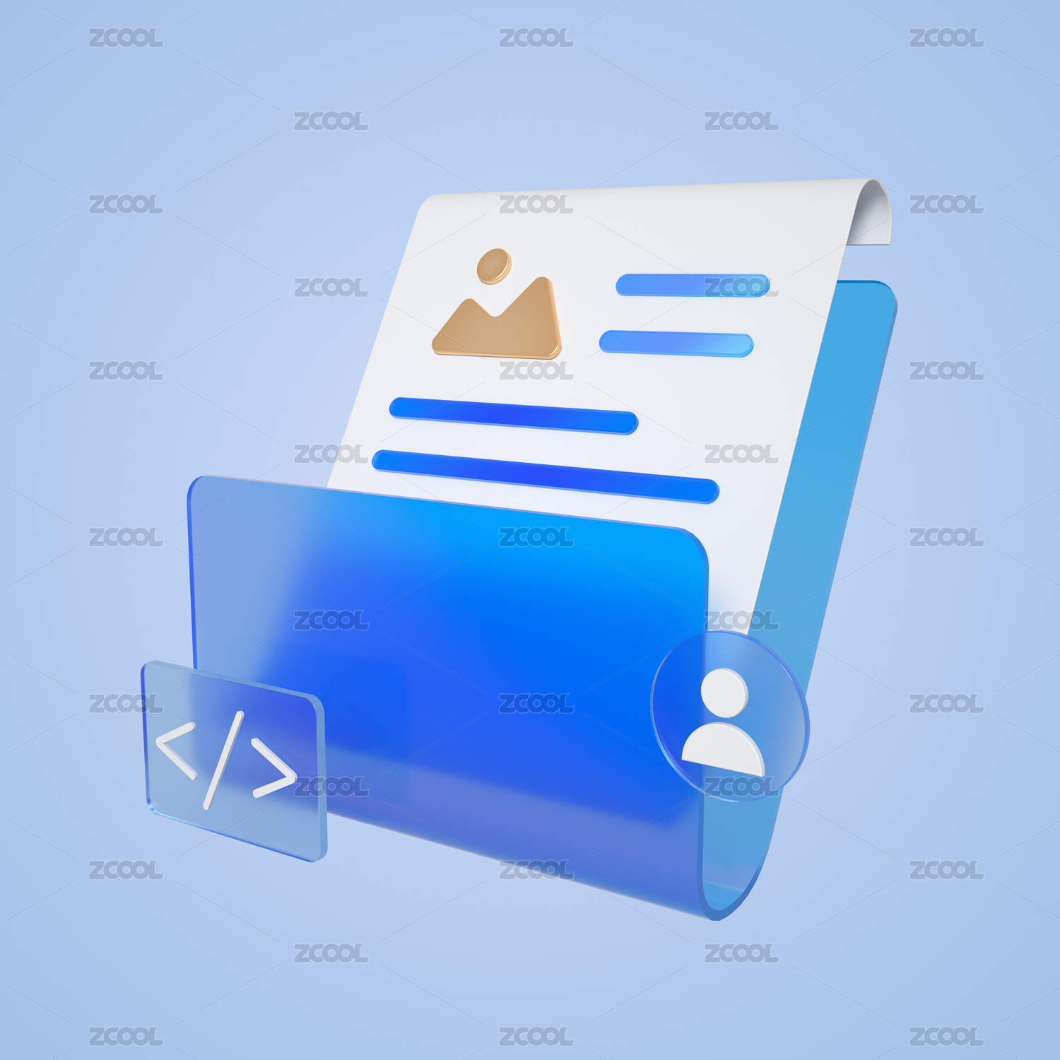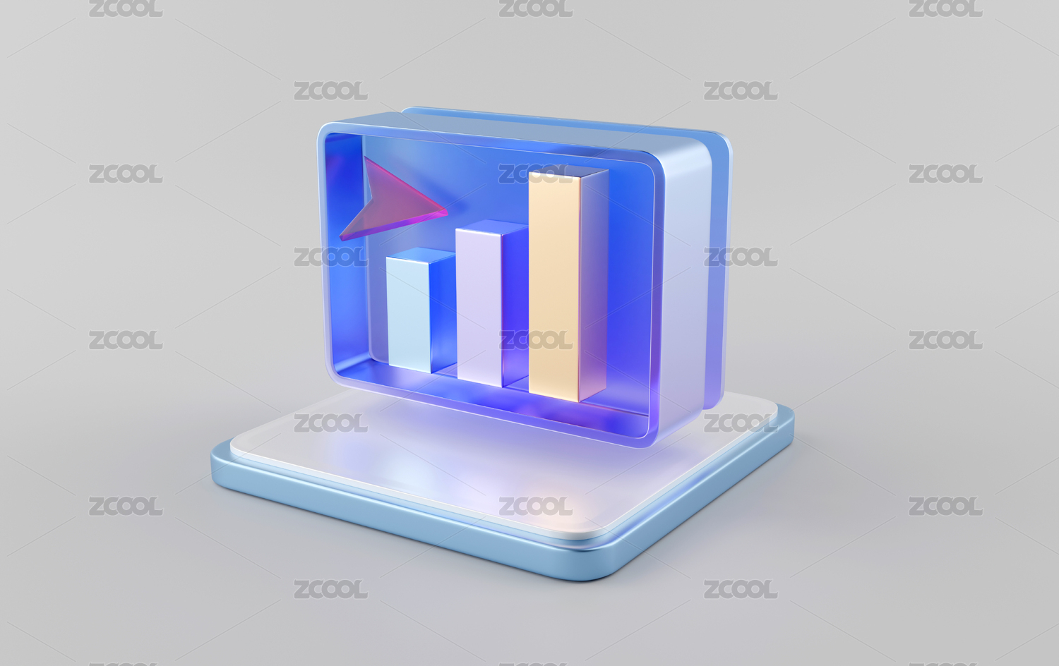 3D藍色水晶玻璃質(zhì)感柱狀圖金融理財素材