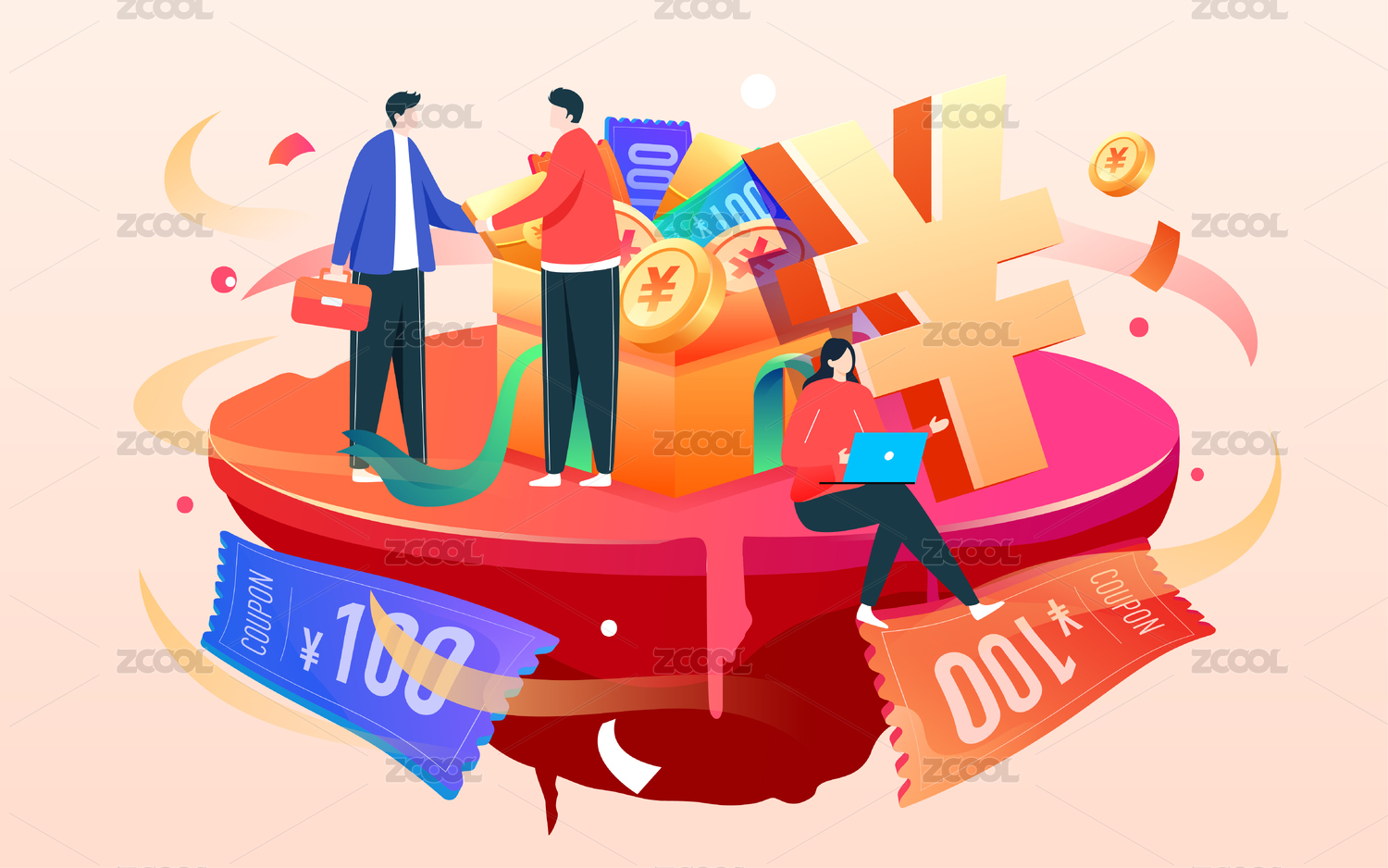 互聯(lián)網(wǎng)金融理財禮盒插畫商務(wù)人物財富海報