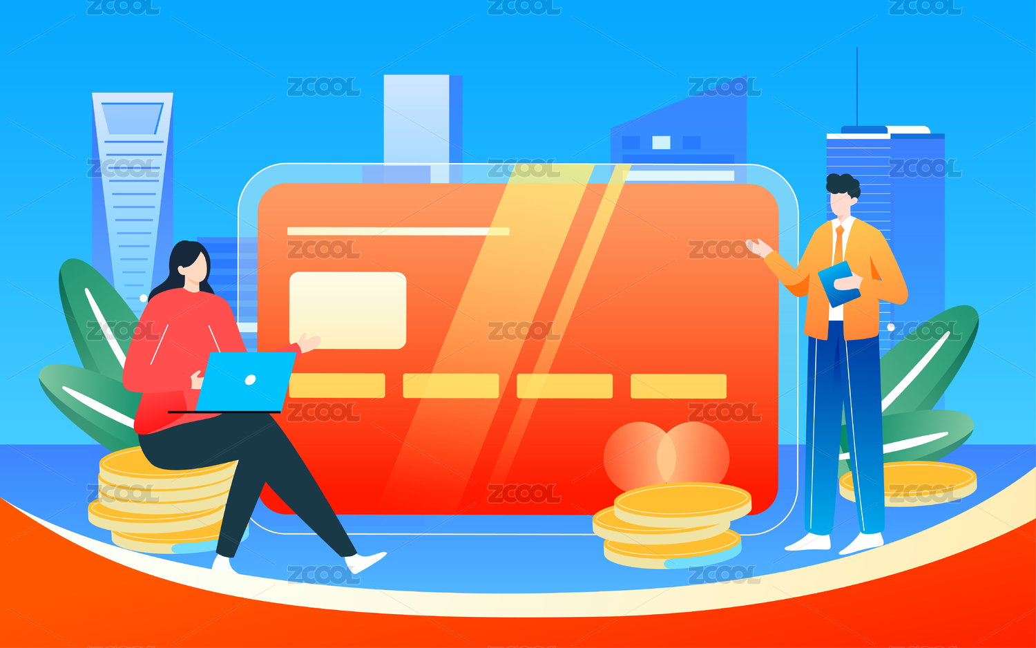 互聯(lián)網(wǎng)金融理財插畫銀行卡資產(chǎn)財產(chǎn)保險海報