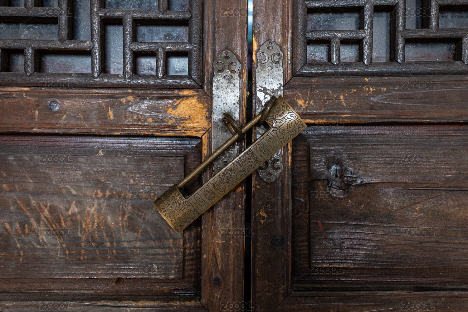 古典精致的木門銅鎖