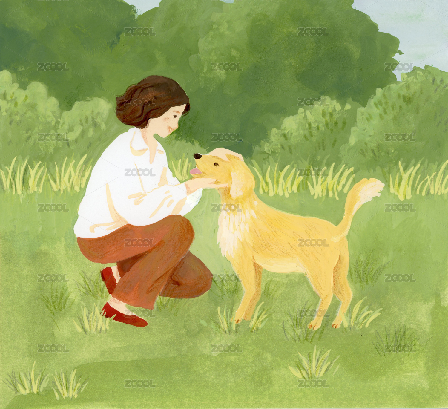 小清新風格可愛小狗與主人