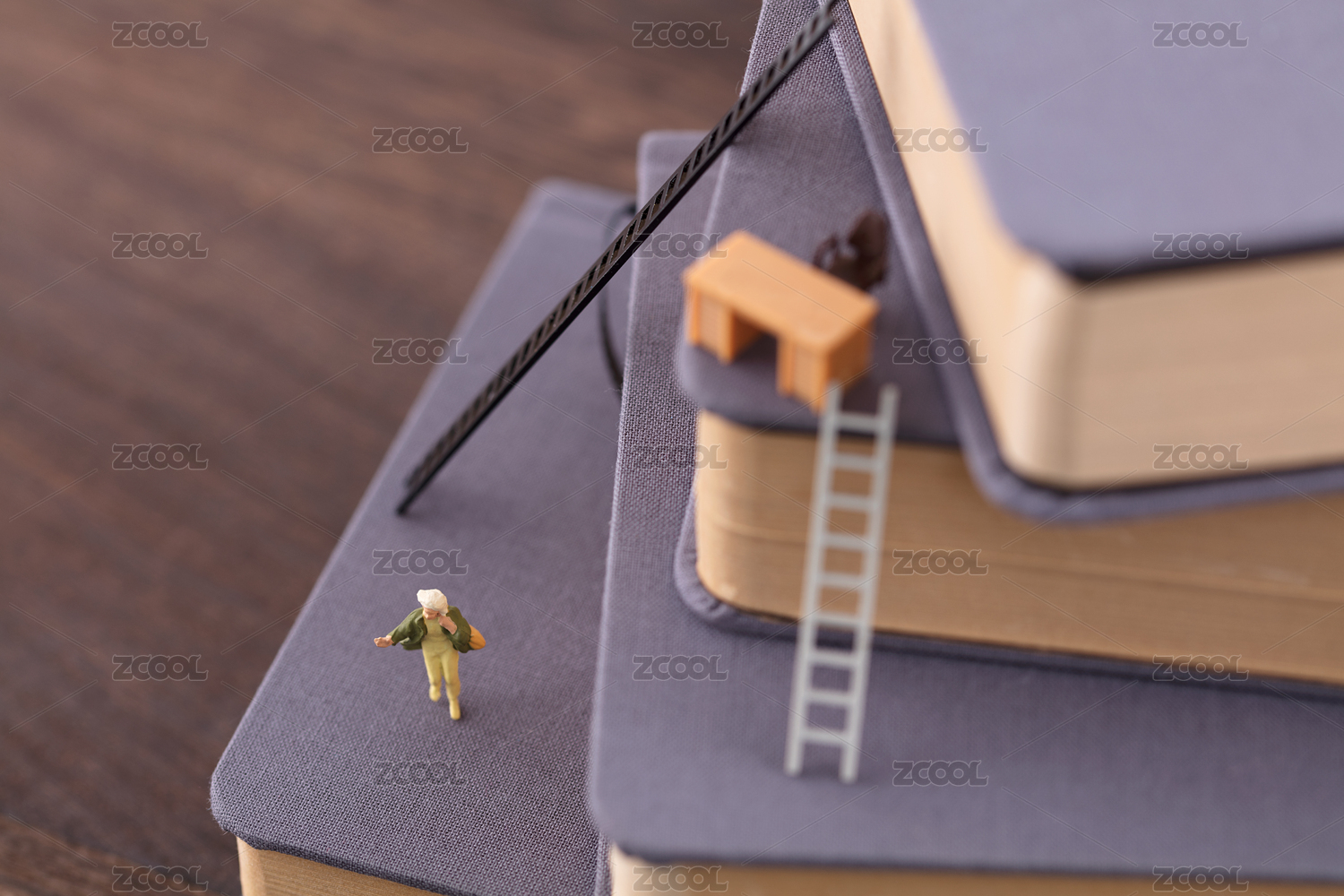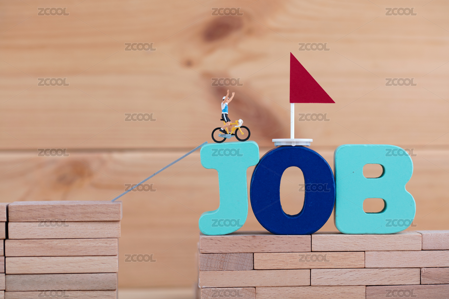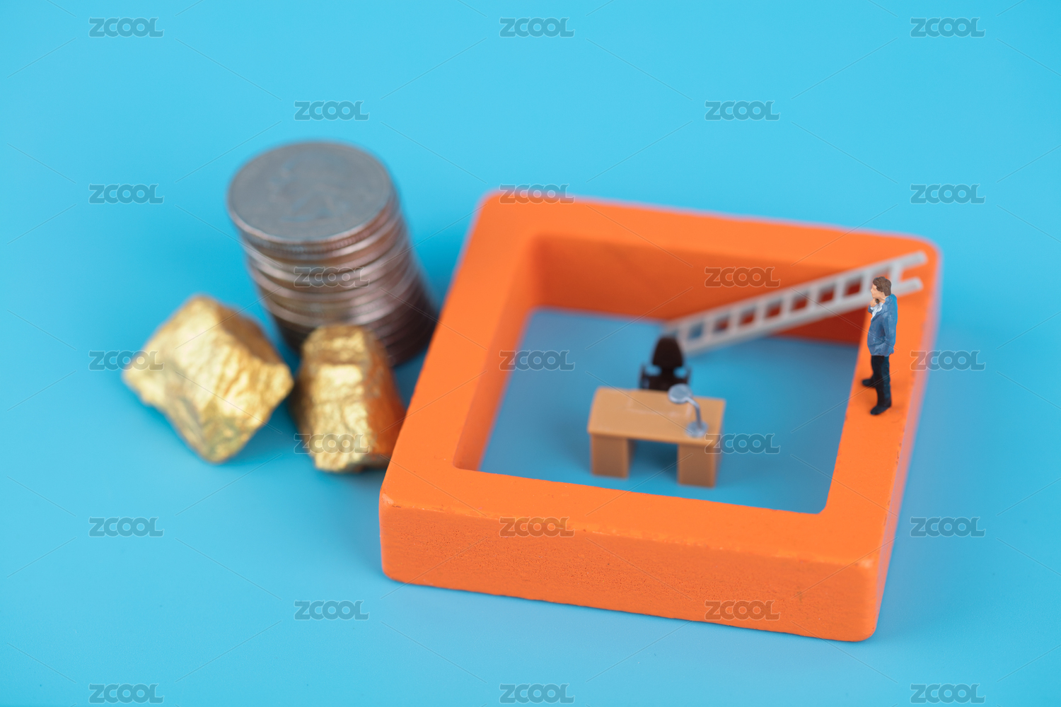 站在彩色積木上準(zhǔn)備跳槽的男士微縮創(chuàng)意圖
