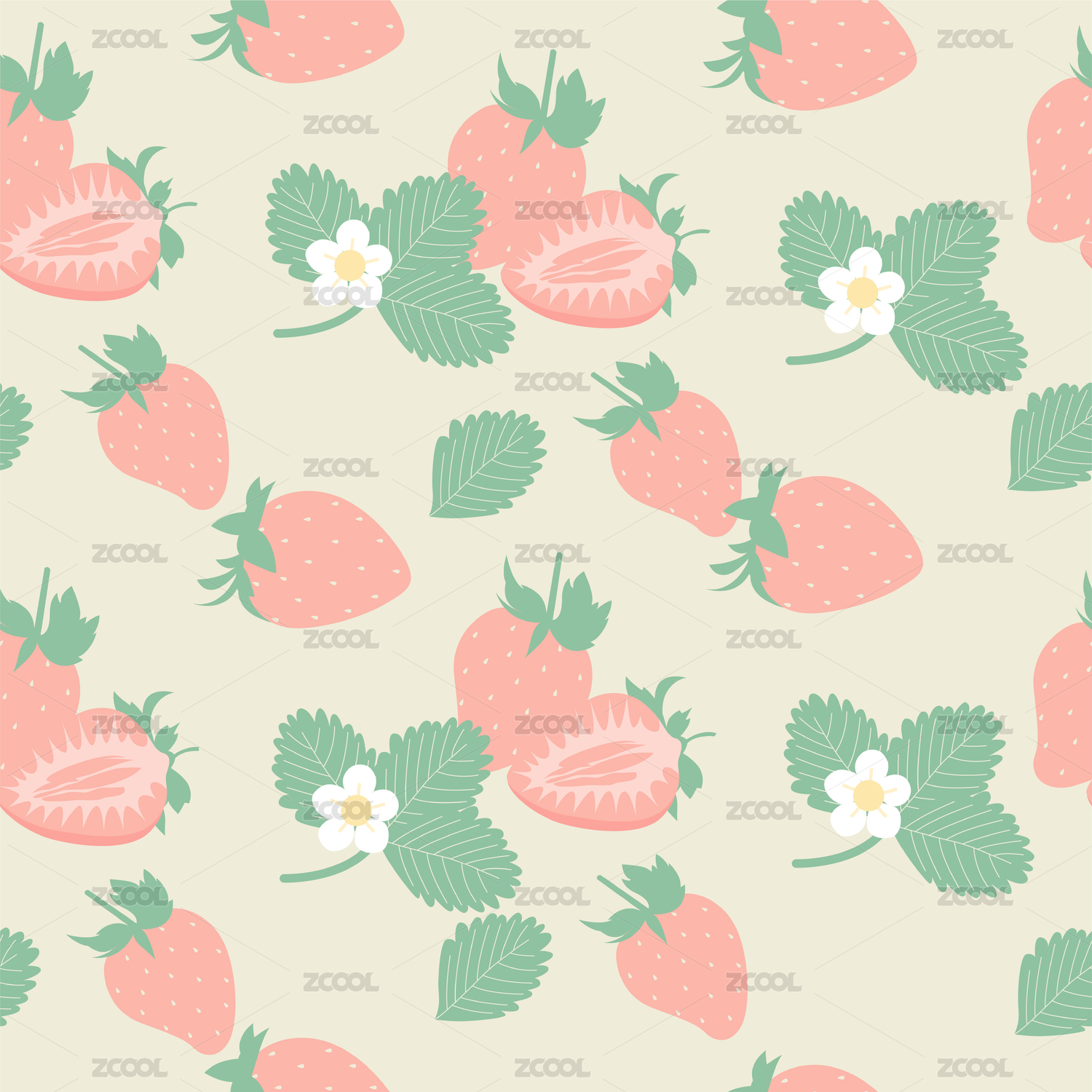 粉色草莓葉子花無縫拼接背景圖案