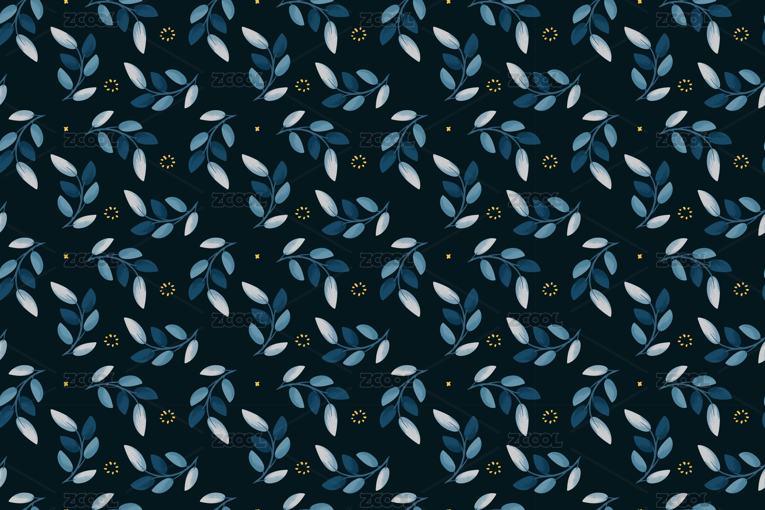 寧靜夜晚樹枝樹葉手繪插畫,無縫拼接插畫素