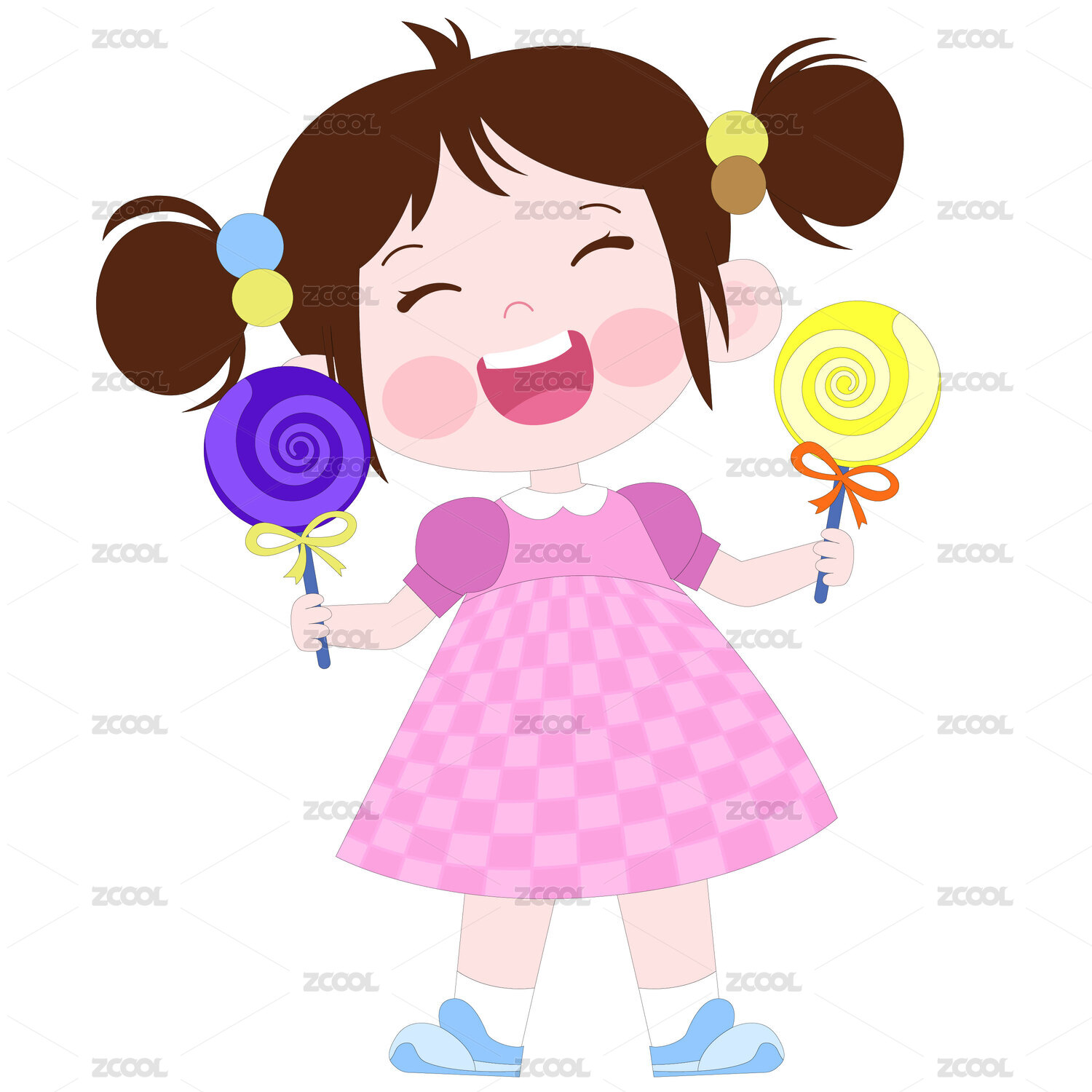 卡通風(fēng)吃彩色棒棒糖的可愛女孩插畫