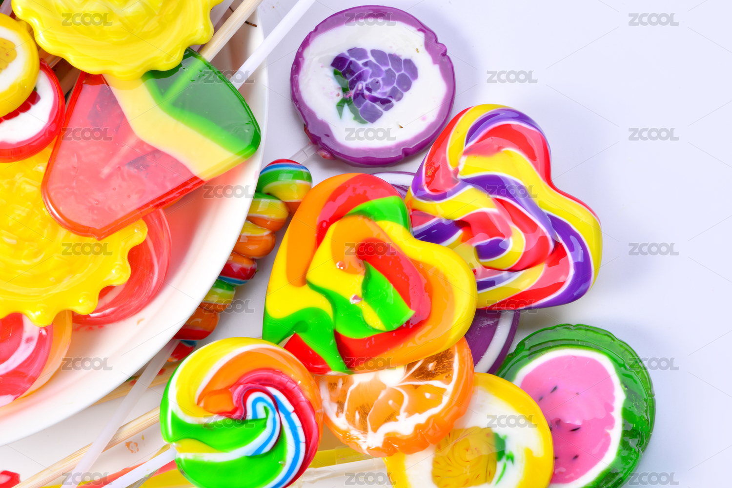 各種形狀五彩斑斕的棒棒糖果