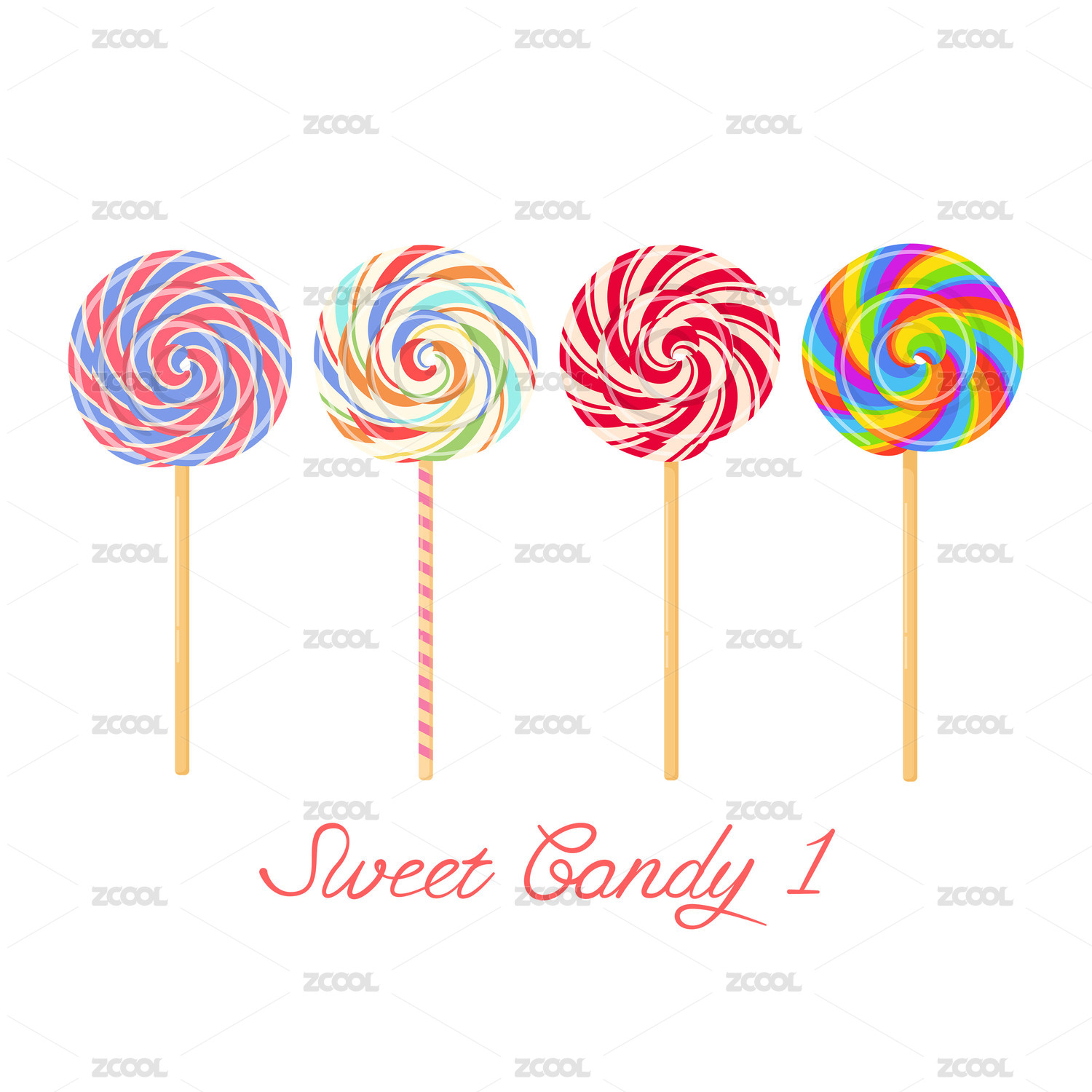 卡通矢量漩渦彩虹棒棒糖