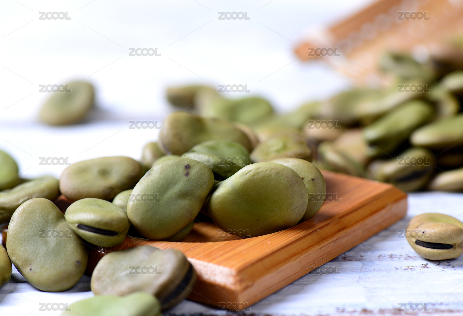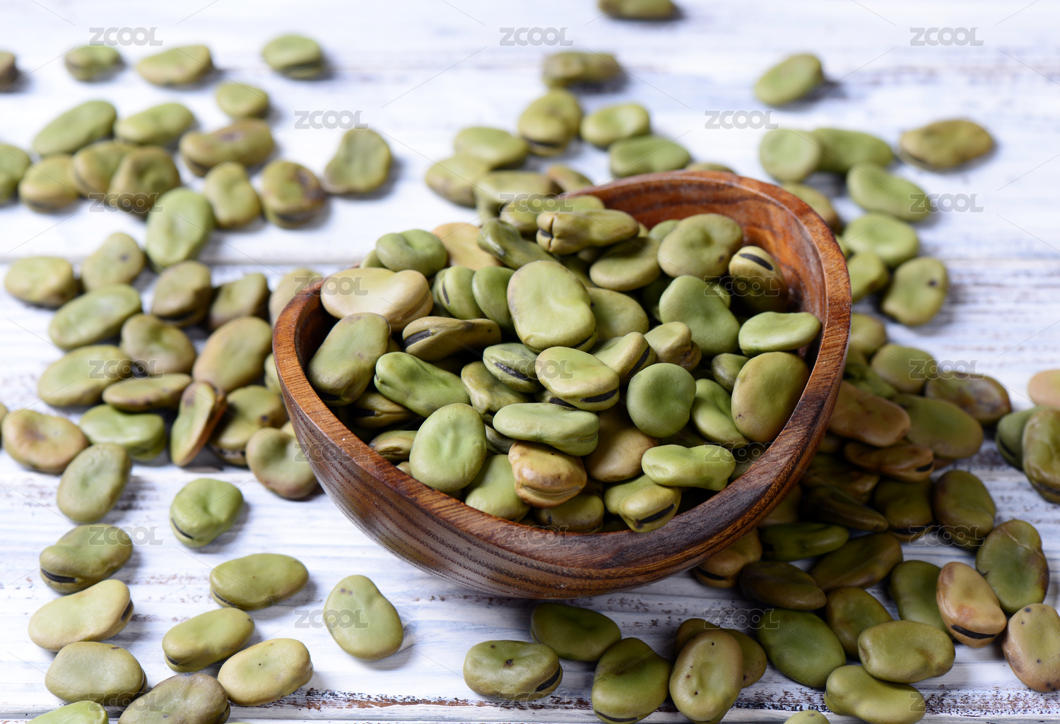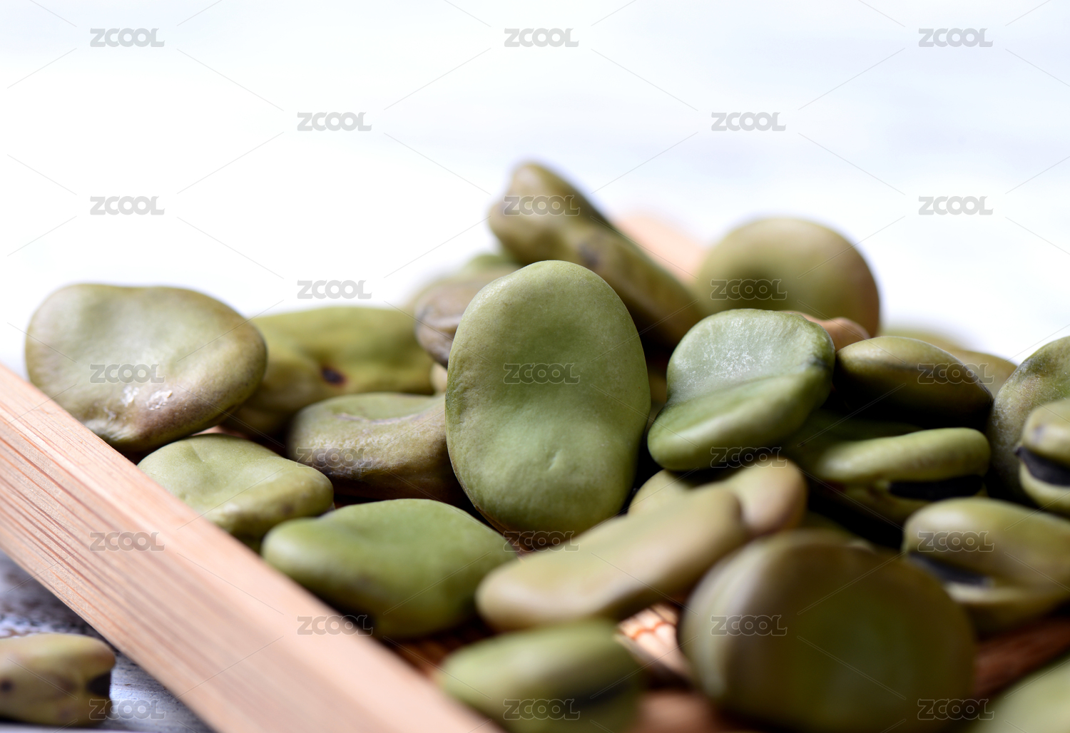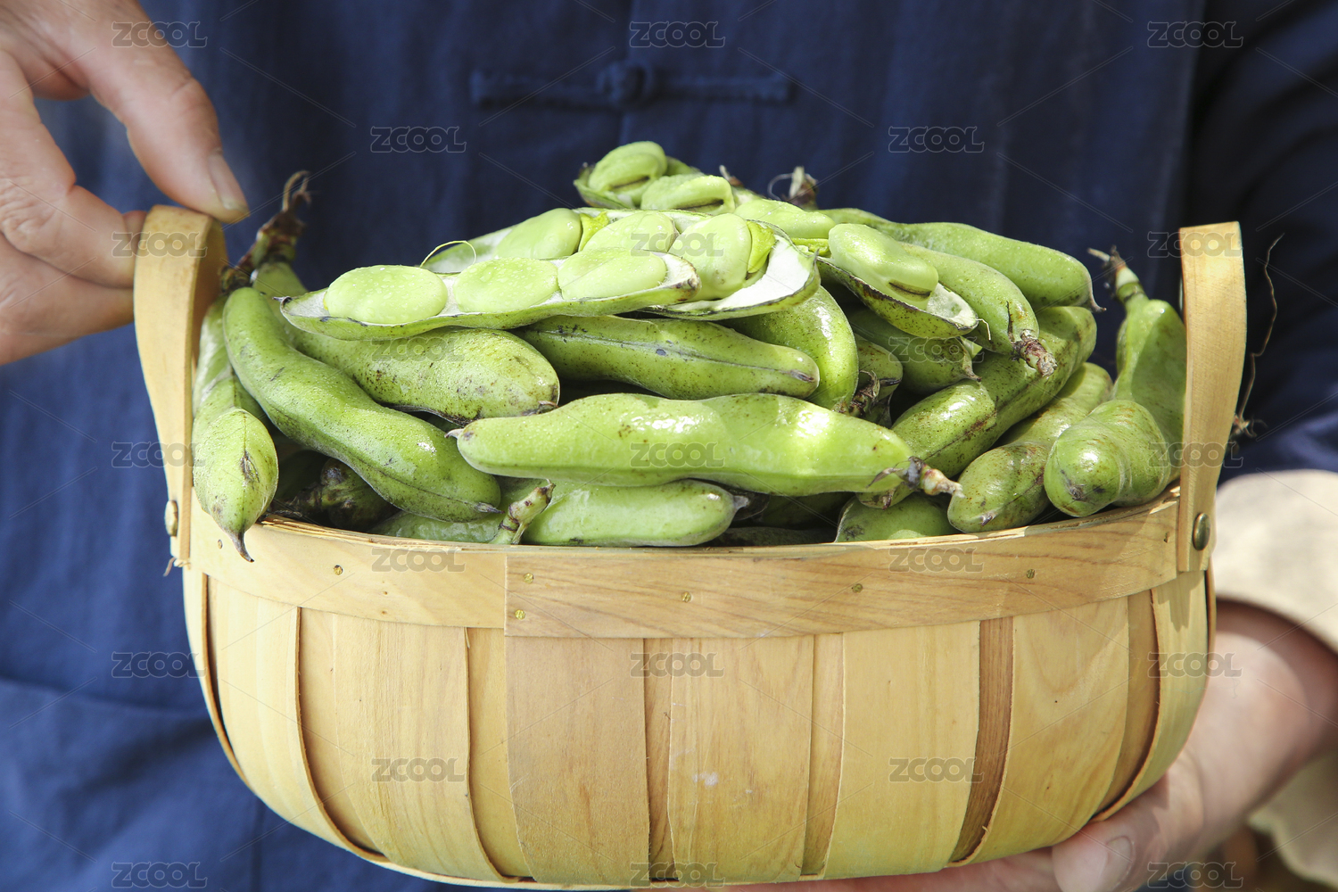 綠色草坪上放著一藍(lán)羅漢豆和手上拿著蠶豆