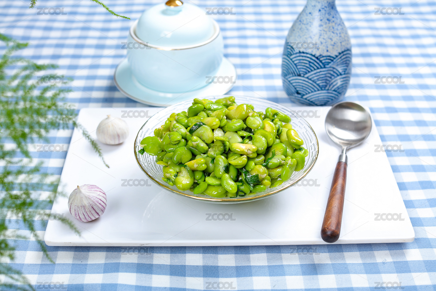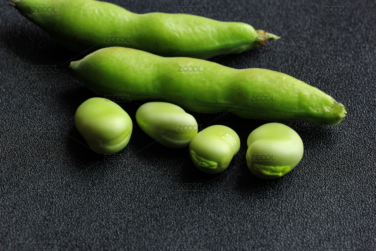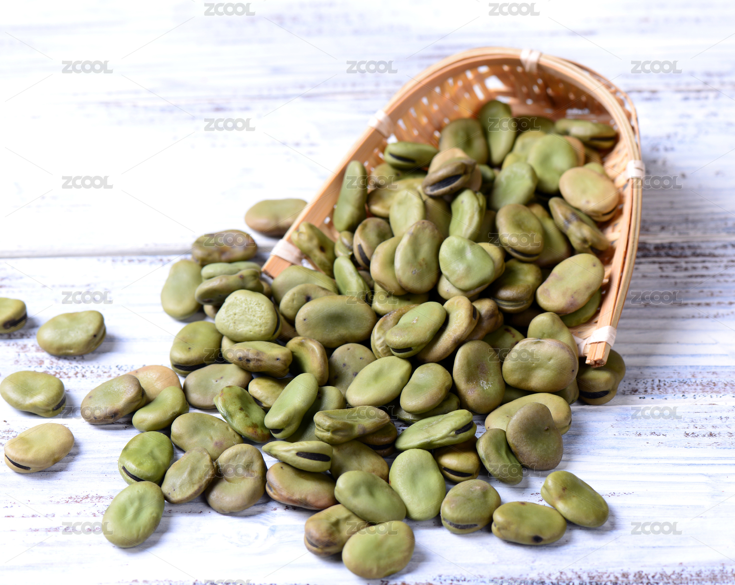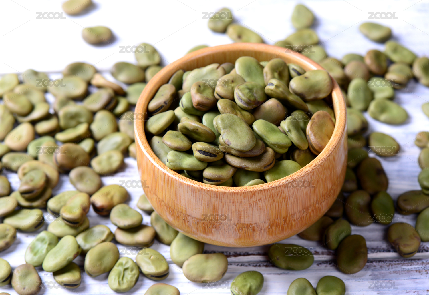 綠色草坪上放著一藍(lán)羅漢豆和手上拿著蠶豆
