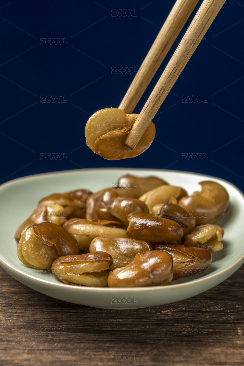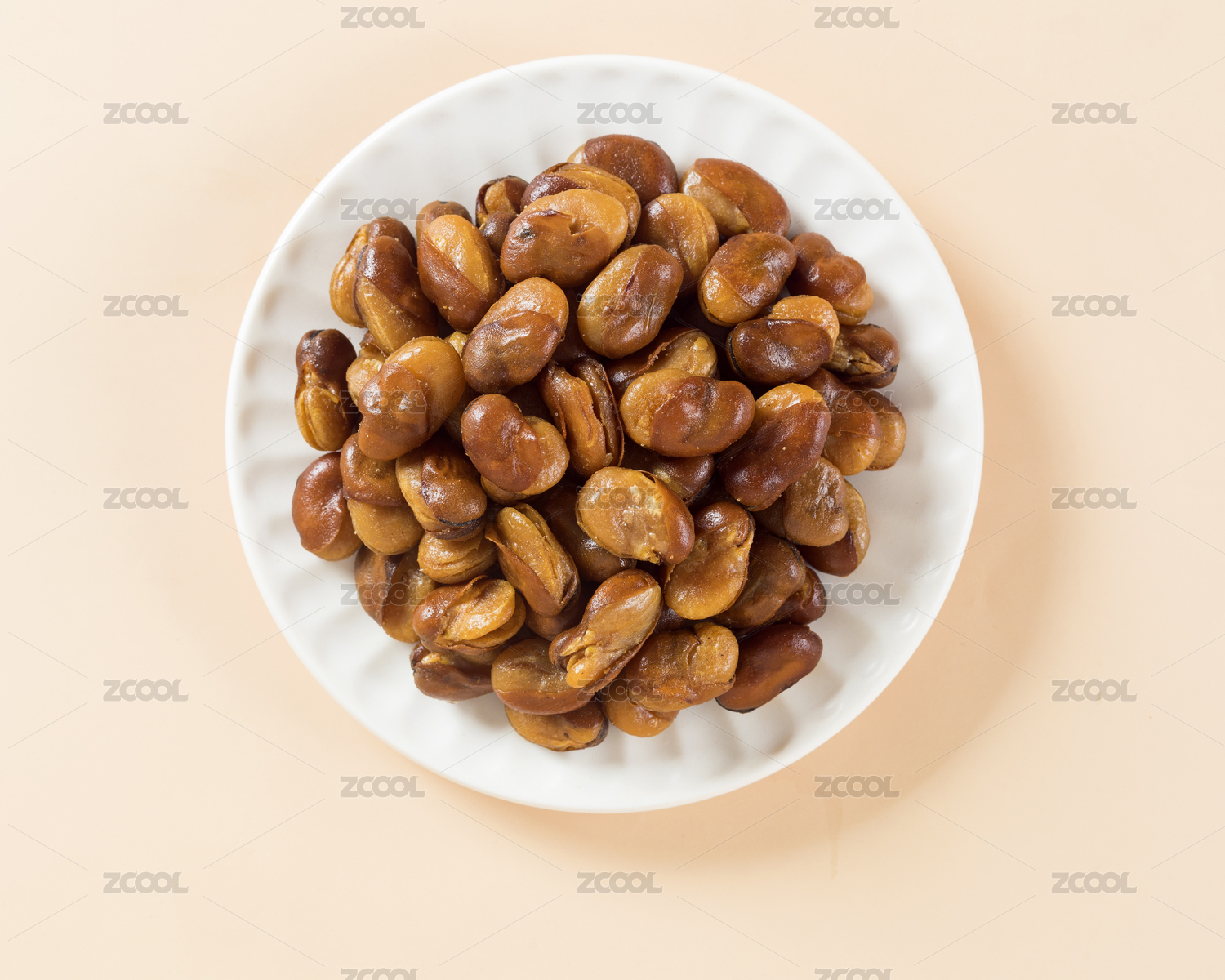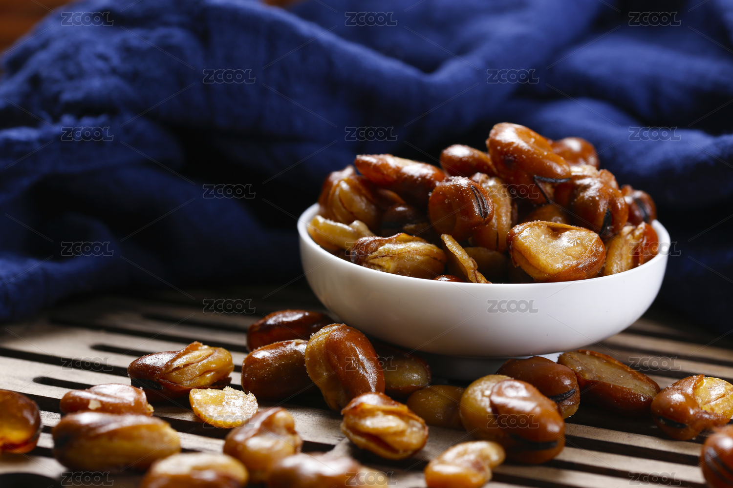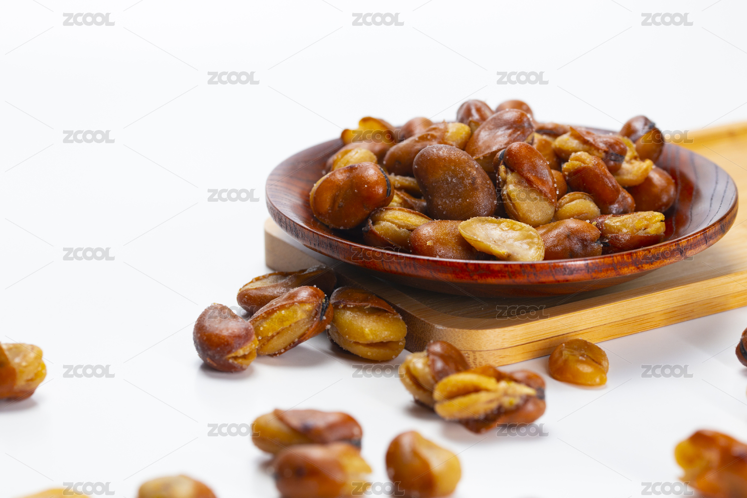 一盤蘭花豆老虎豆油炸蠶豆擺放在木桌面上