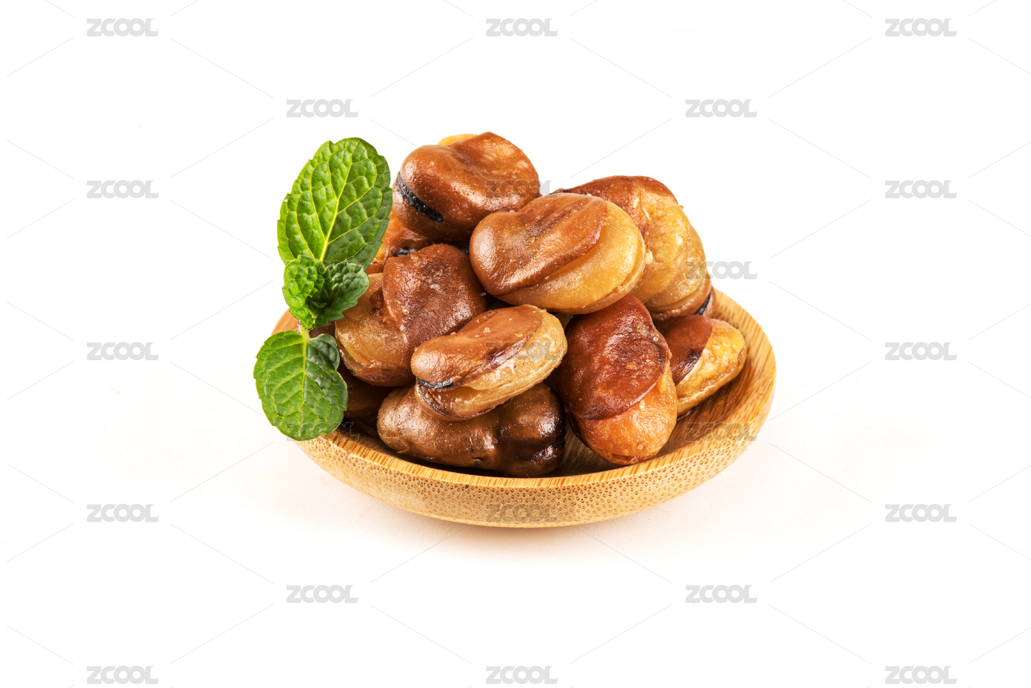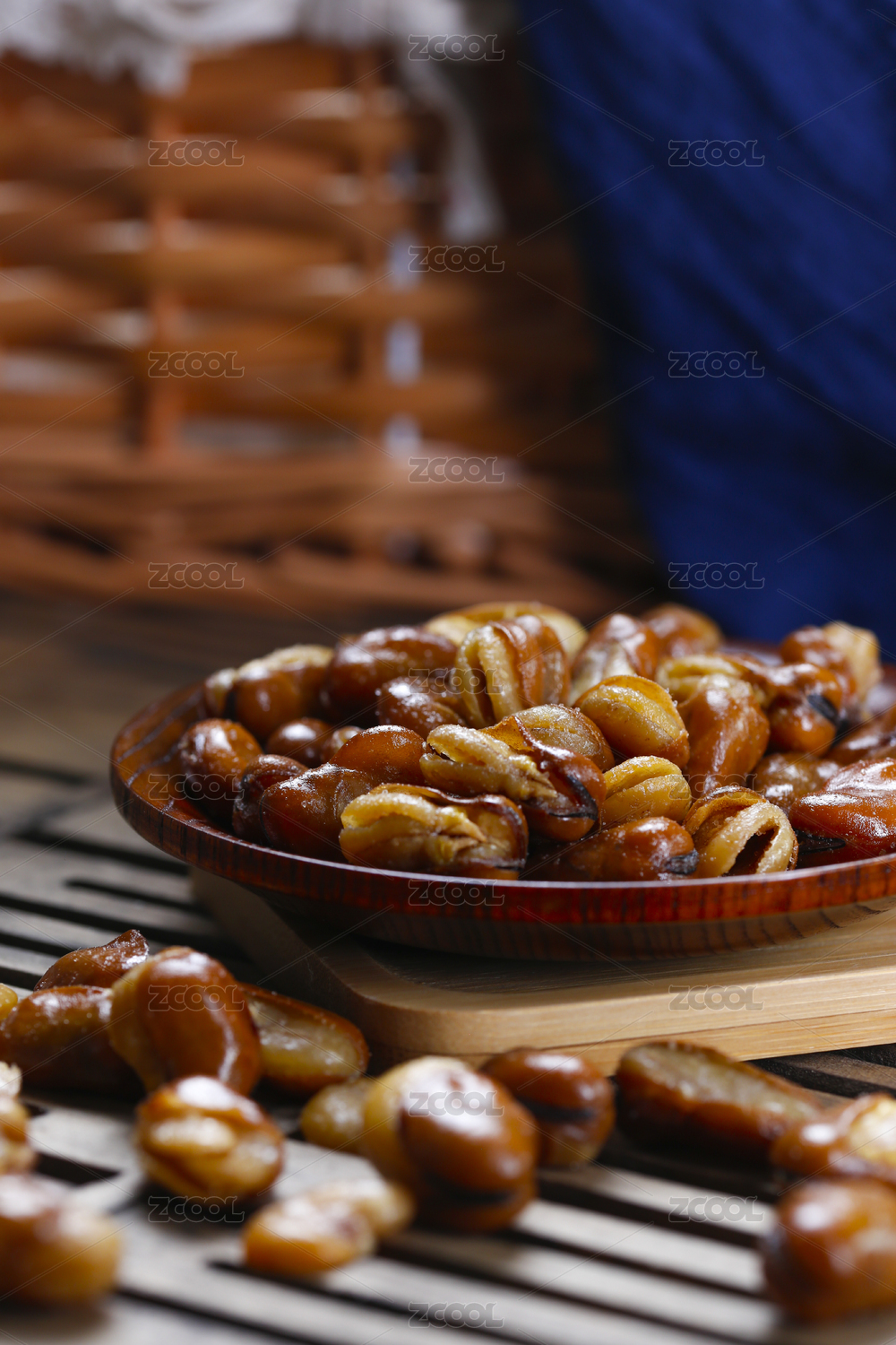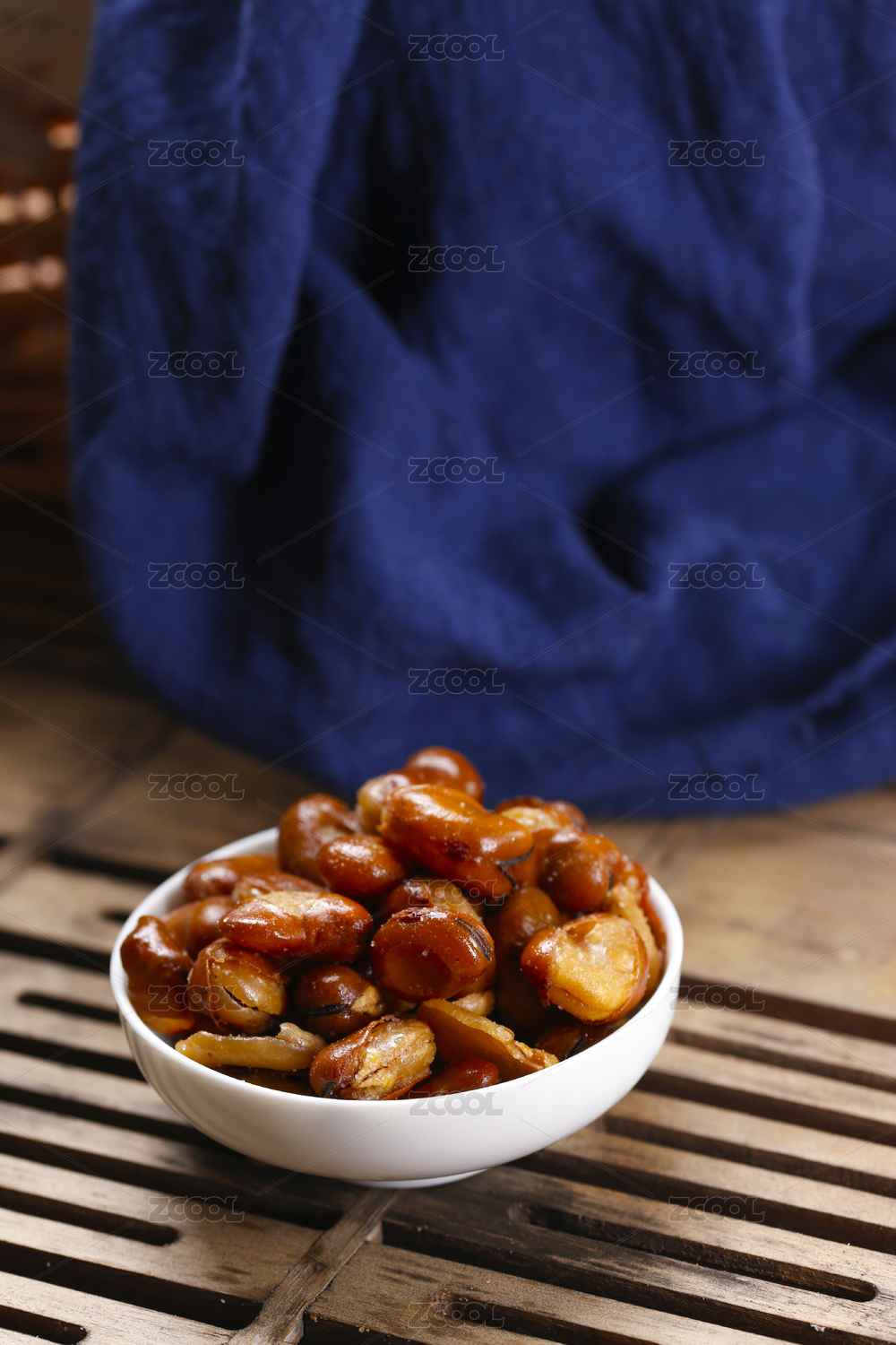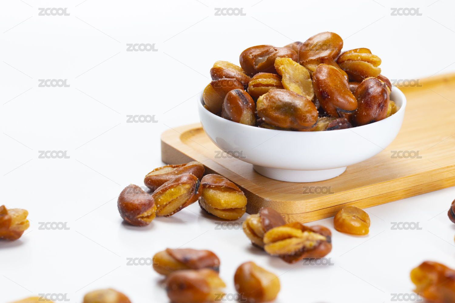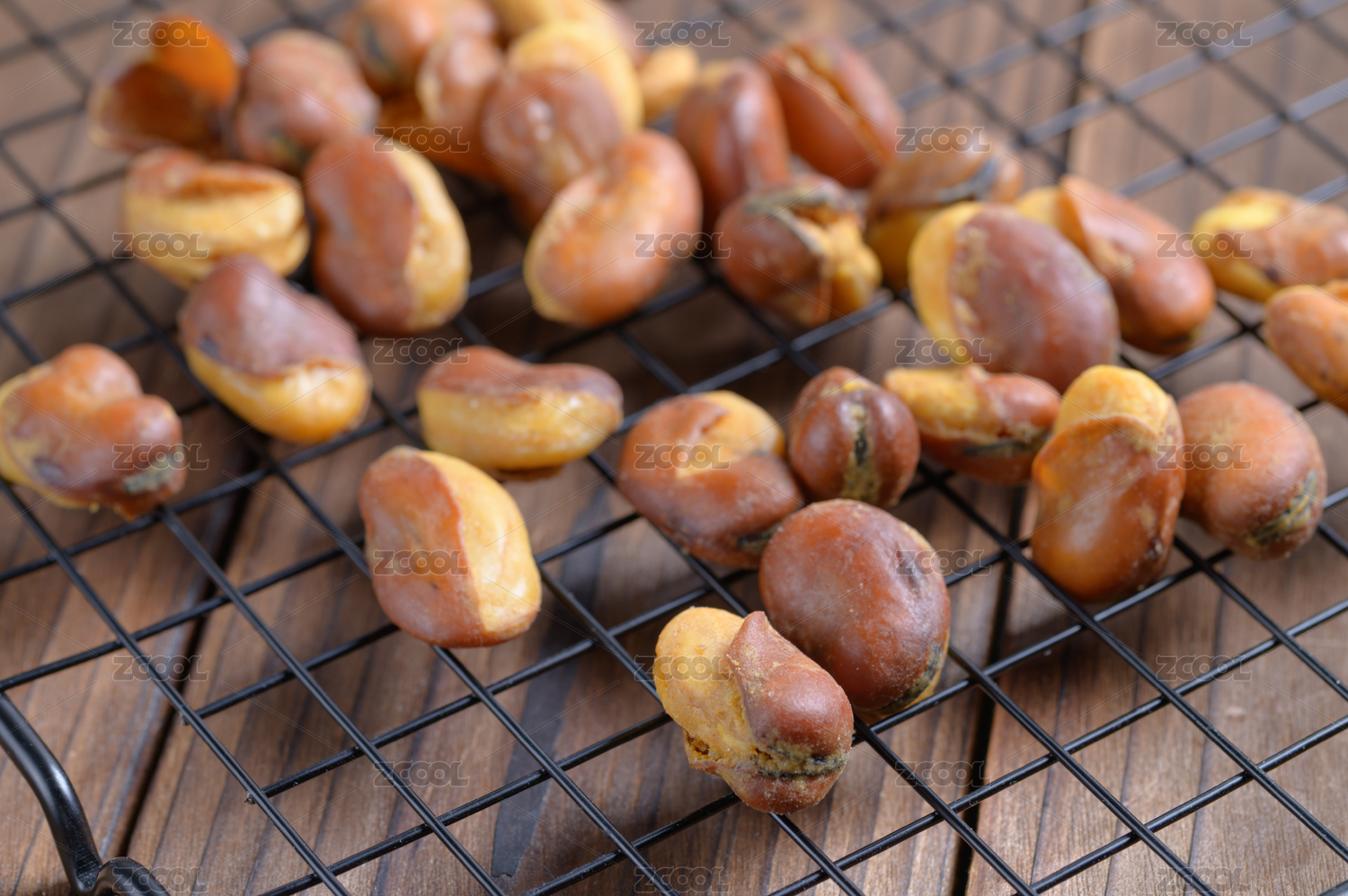 一盤蘭花豆老虎豆油炸蠶豆擺放在木桌面上