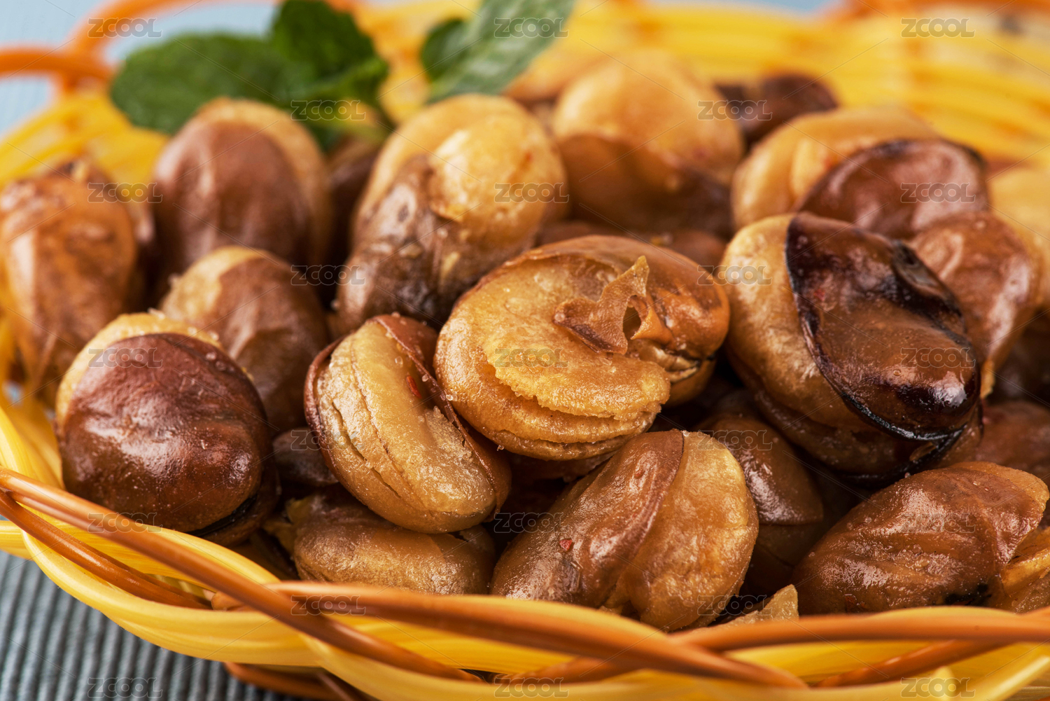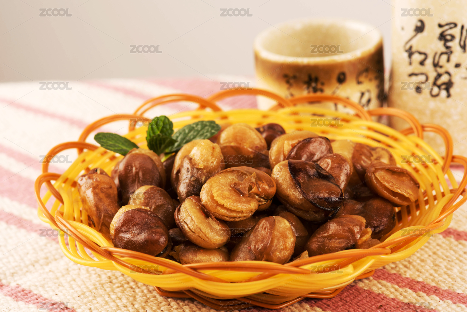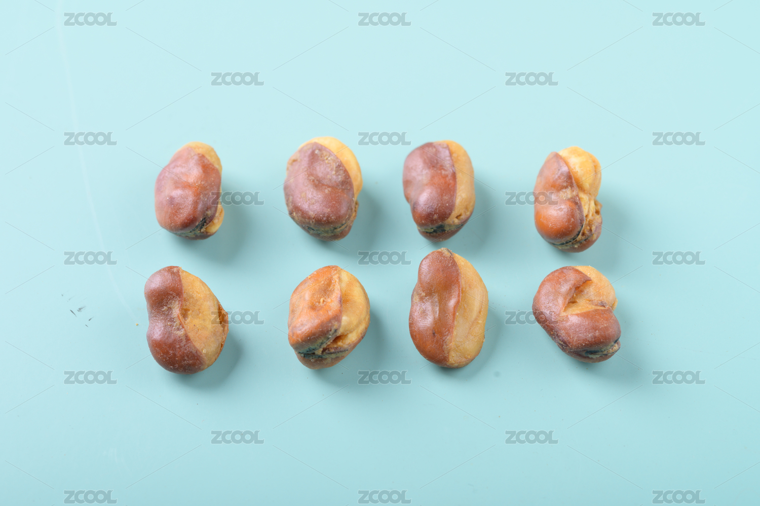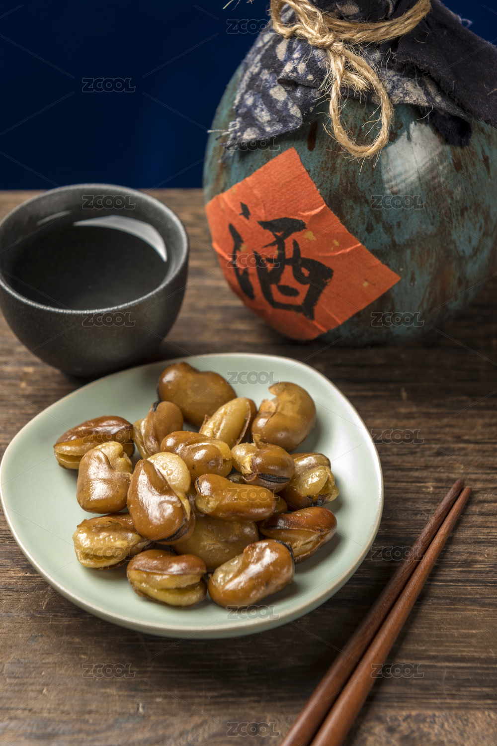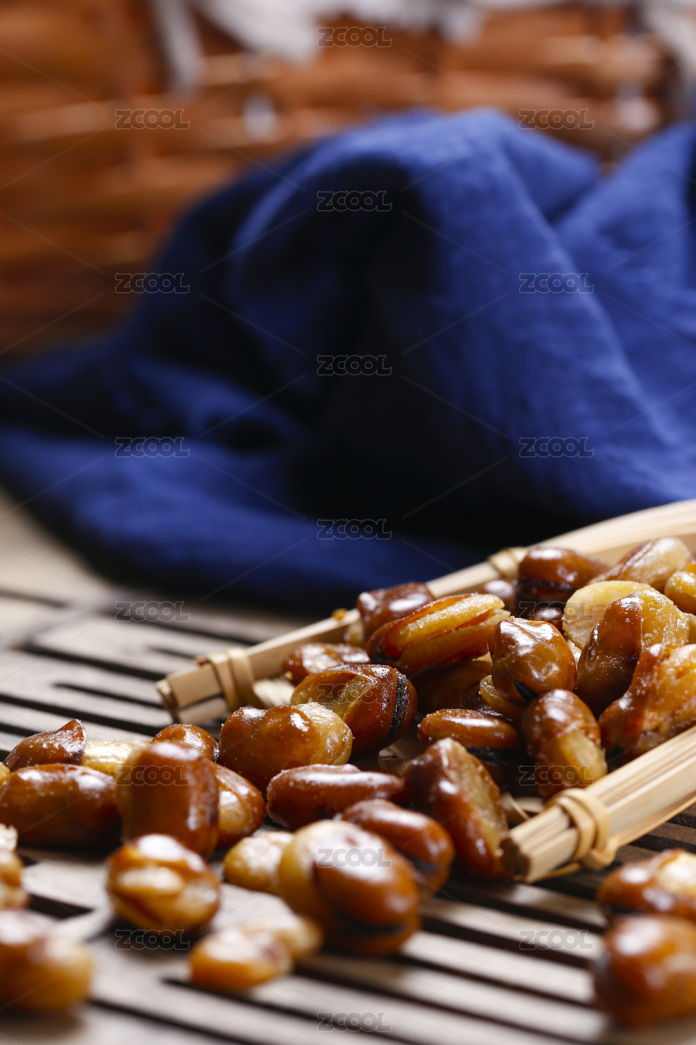 一盤蘭花豆老虎豆油炸蠶豆擺放在木桌面上