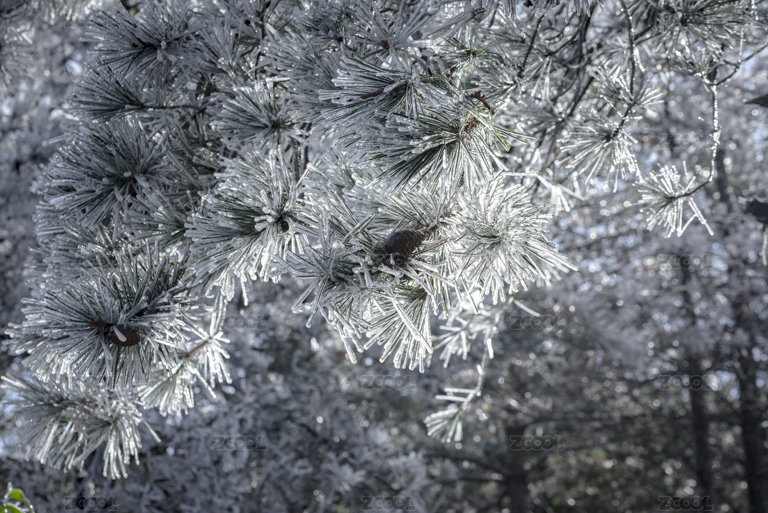 極端低溫下松樹(shù)針葉外形成的霧淞冰掛