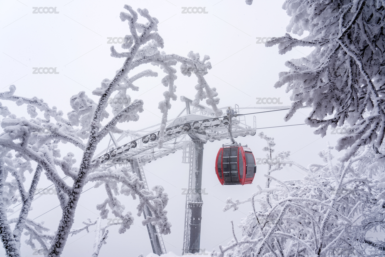 冬天雪寒冷旅游旅行索道纜車轎廂低溫寒潮降