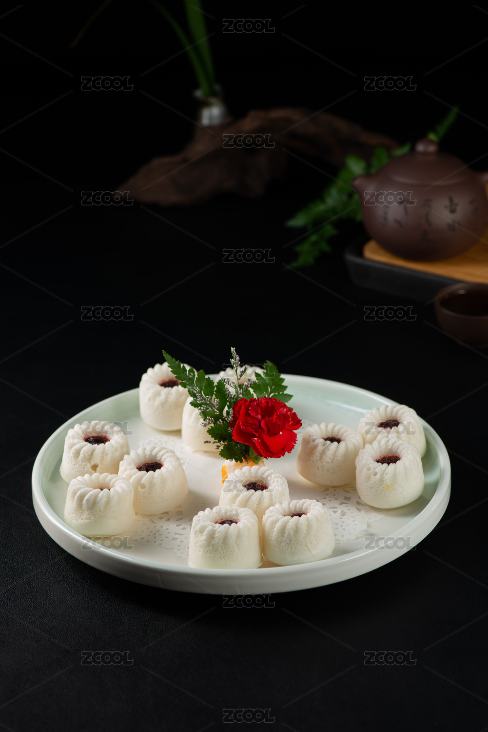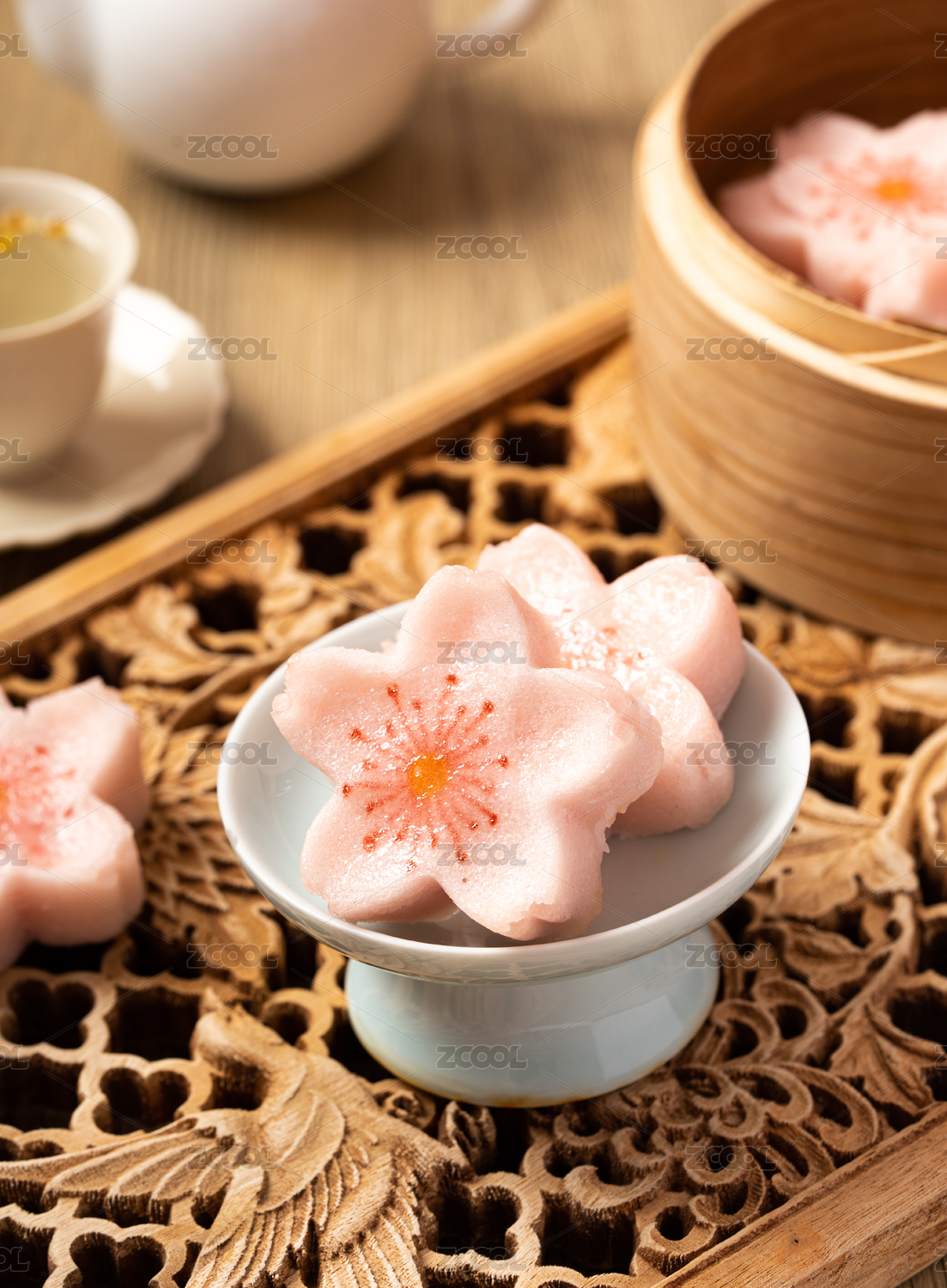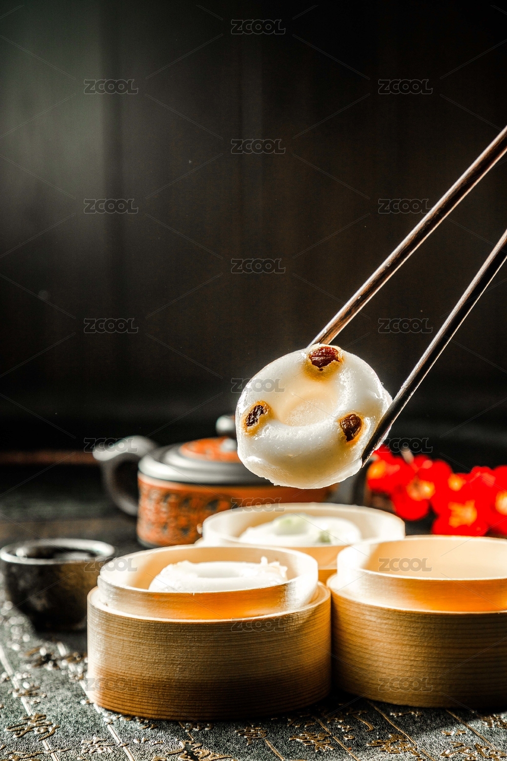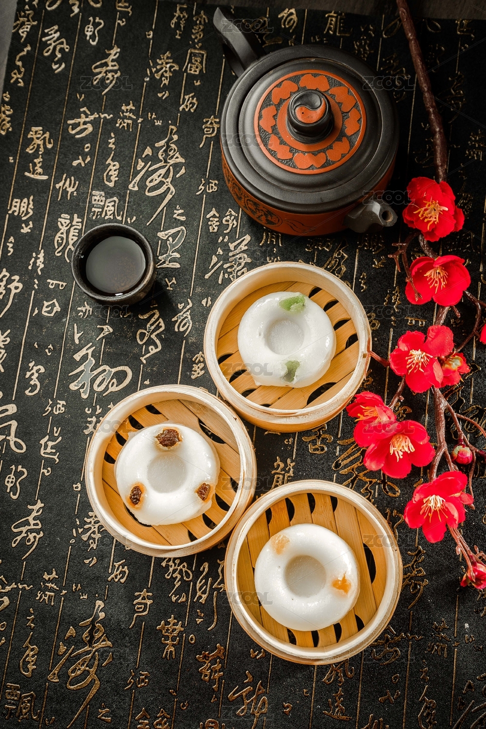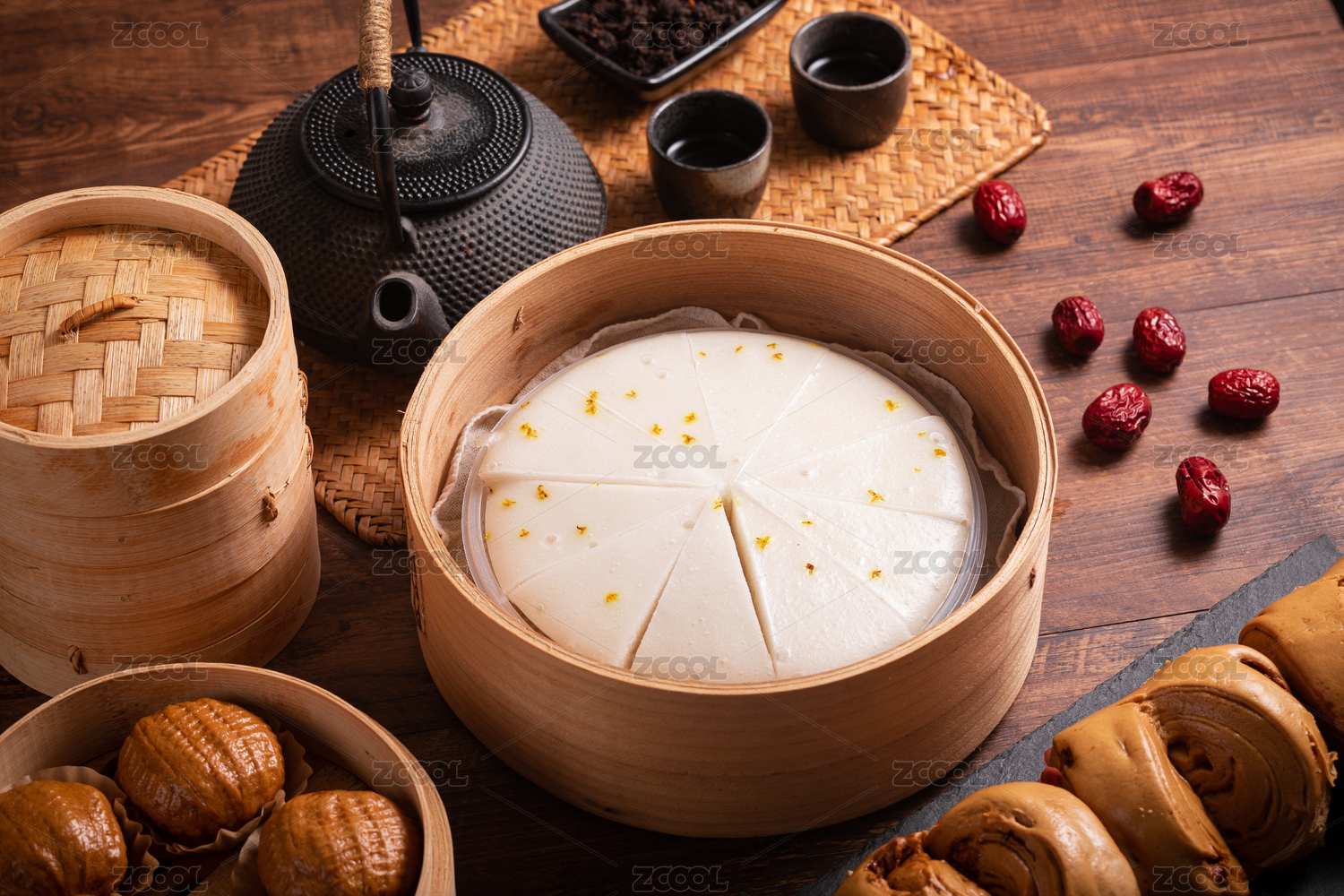 傳統(tǒng)中式背景中蒸籠裝著桂花米糕