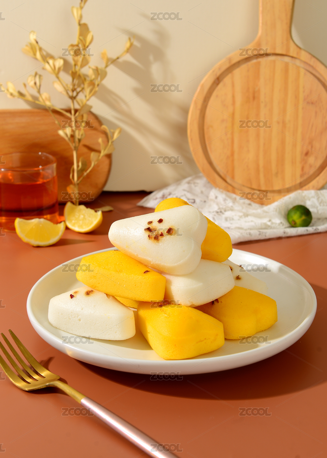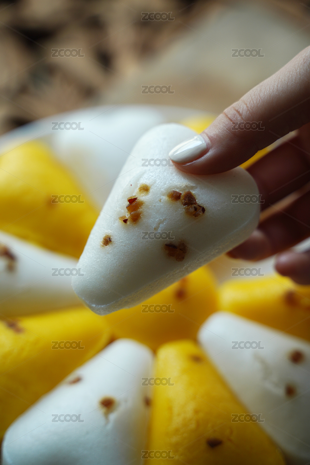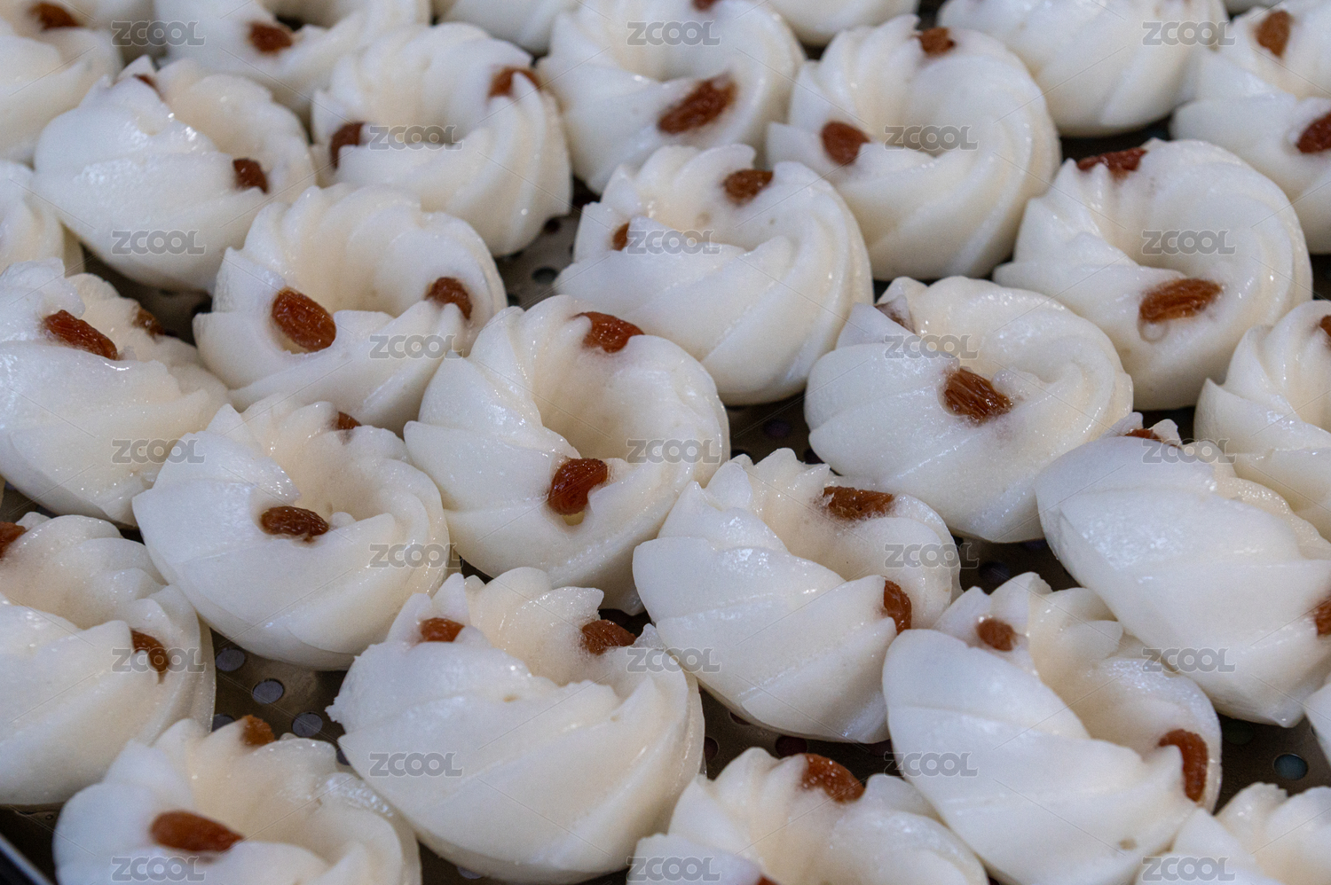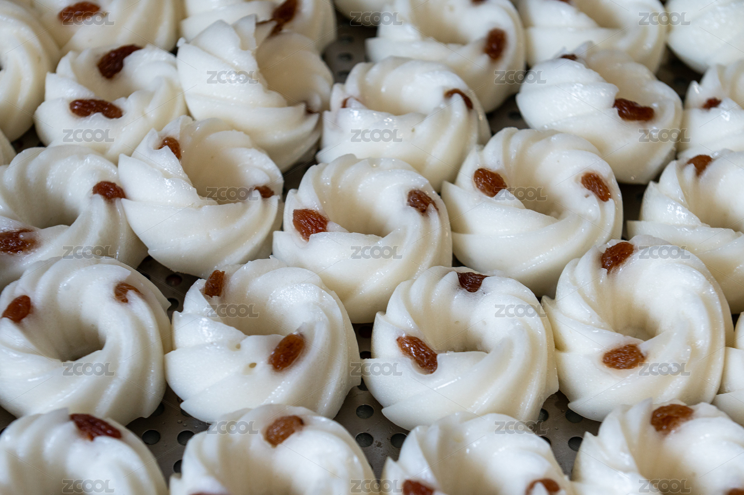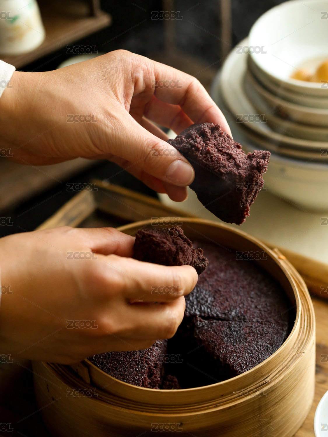 傳統(tǒng)中式背景中蒸籠裝著桂花米糕