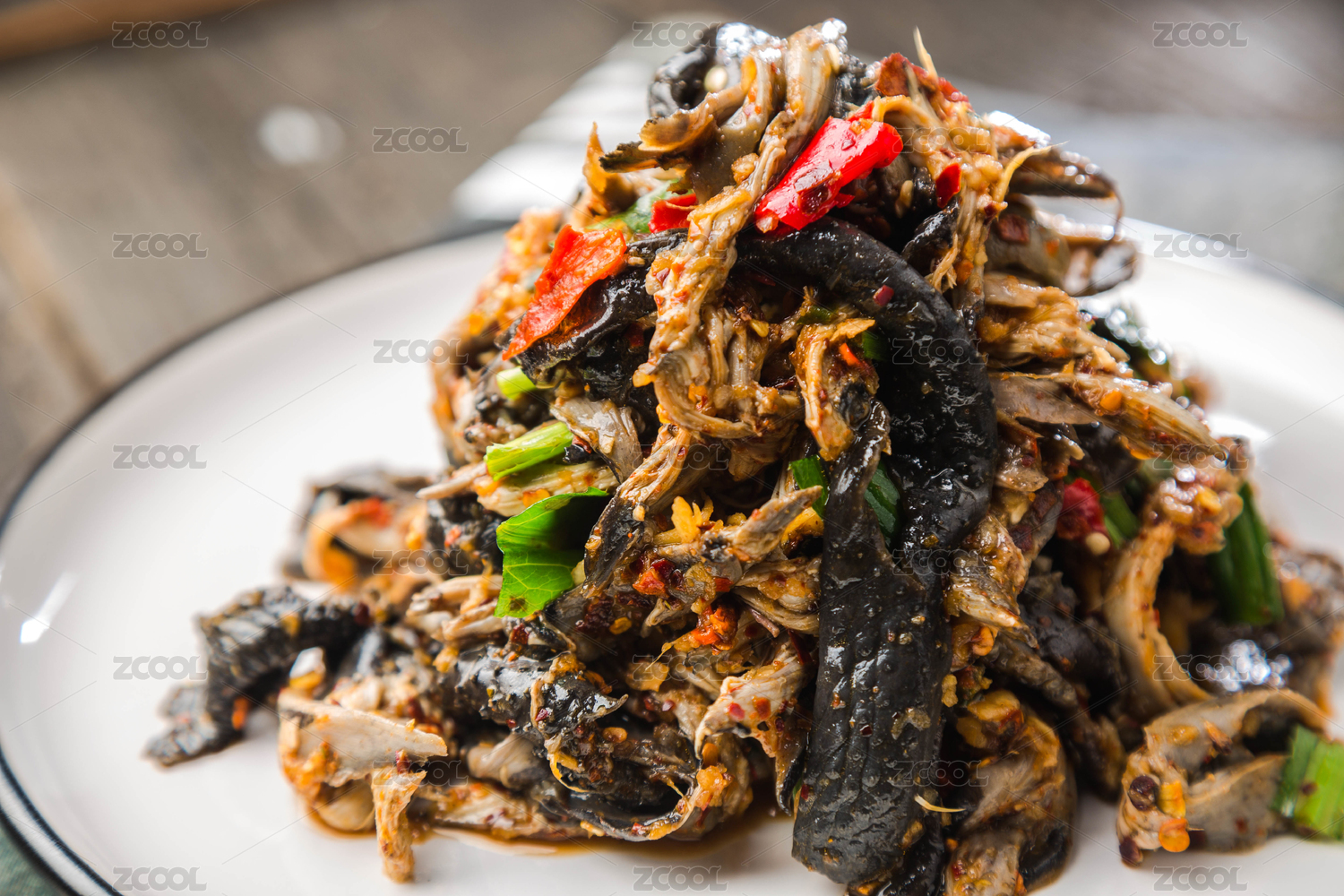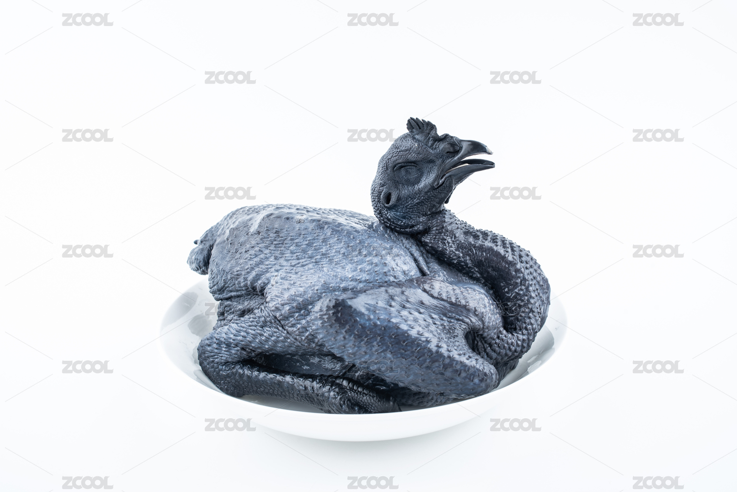 一只烏雞放在盤子里